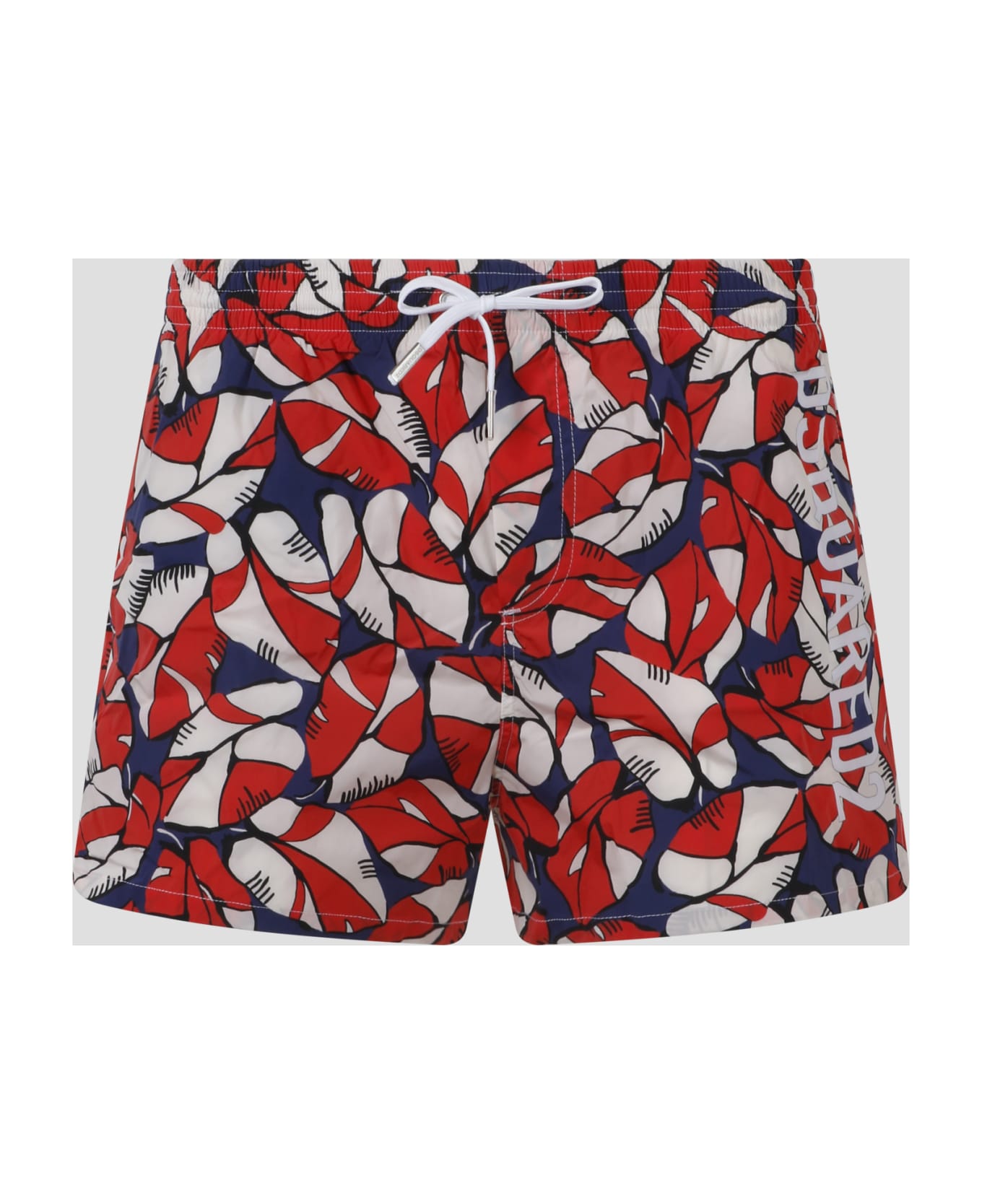 Dsquared nylon swim shorts with all over floral print. - SS23 - Regular fit - Elasticated drawstring waistband - Side pockets - `Dsquared2` lettering print on left leg - Made in Italy - 92%Polyester 8%Elastane