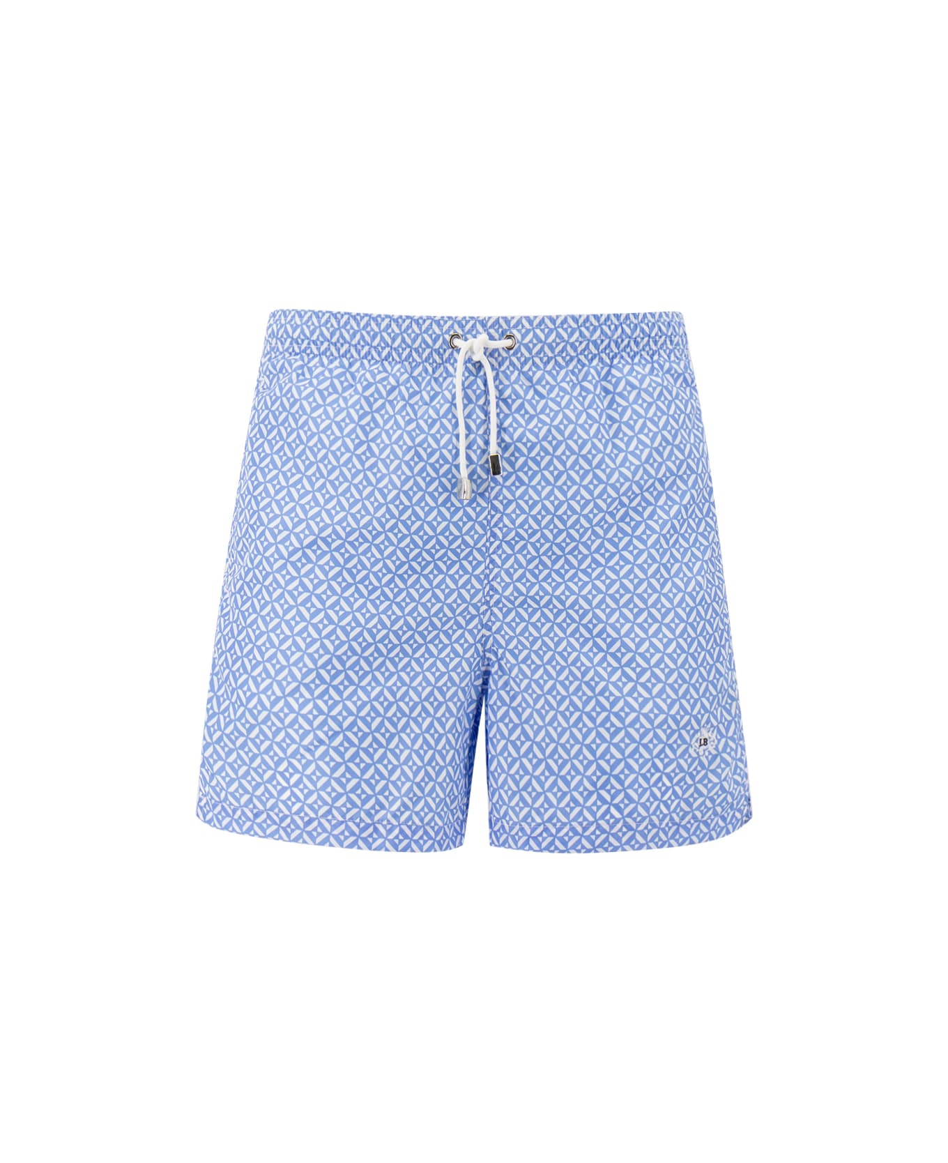 Swim boxer shorts with abstract pattern, drawstring waist with metal finials, back pocket with flap, two side pockets, regular fit. Notice: Swimwear must be tried on while wearing one's own undergarments.