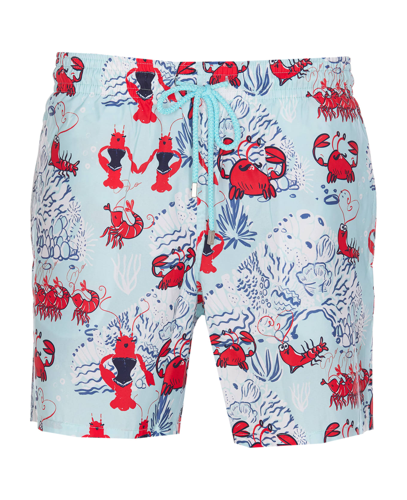 Vilebrequin light blue swimwear, elasticized on waist, coulisse closure, printed, lateral pockets