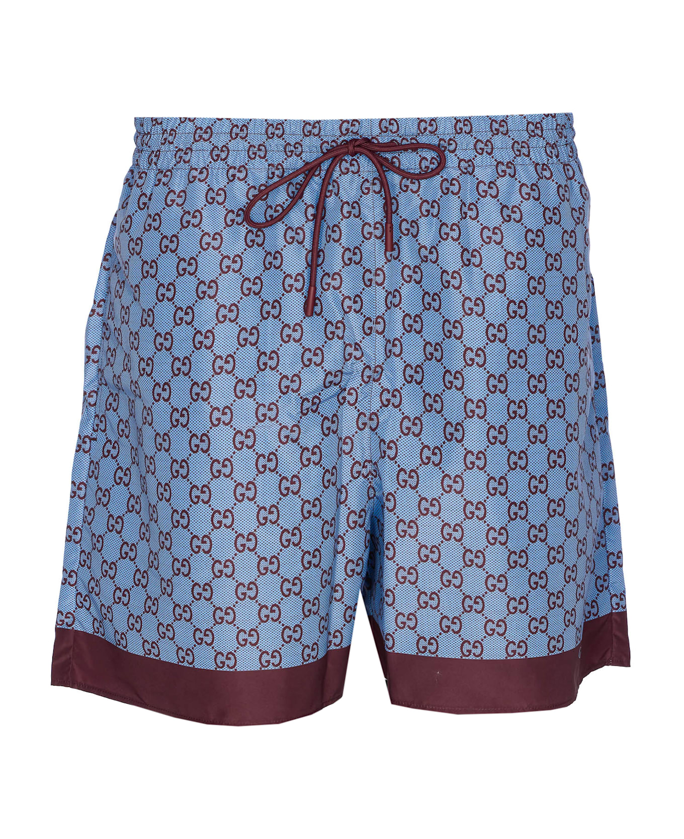 Gucci blue swimwear, elasticized on waist, coulisse closure, all over GG logo, pockets