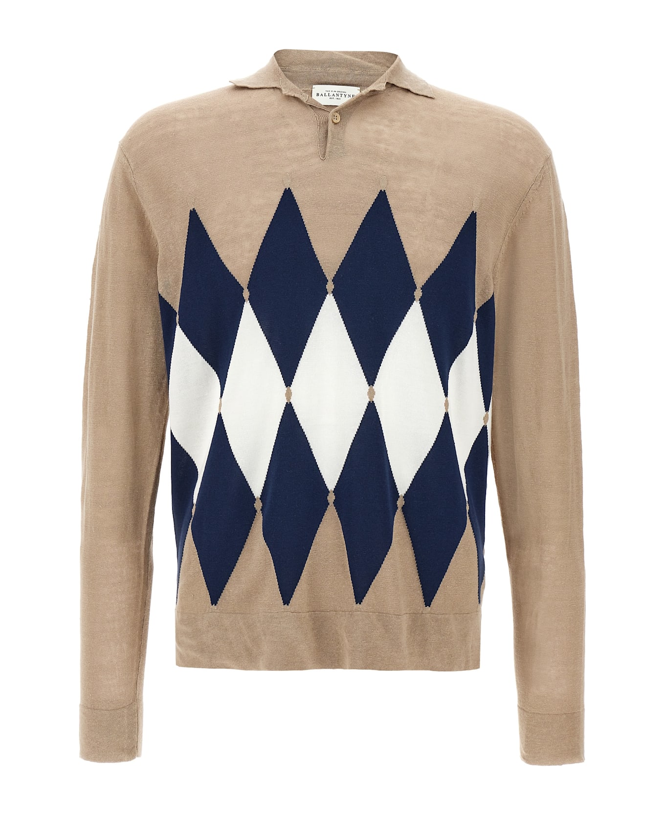 'Argyle' linen and cotton polo shirt with collar and buttons, long cuffed sleeves.