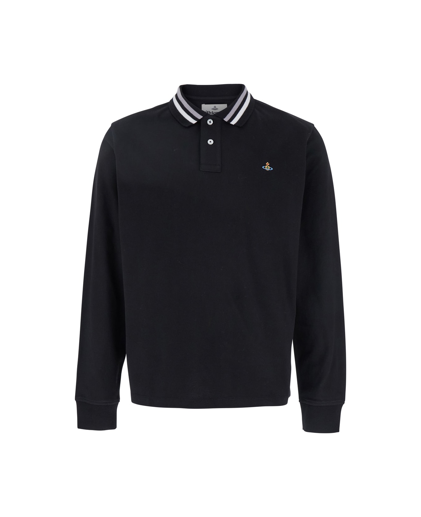 Polo shirt Black Classic contrasting collar Long sleeves Front button closure Orb logo detail on the front Straight hem Cotton Regular fit