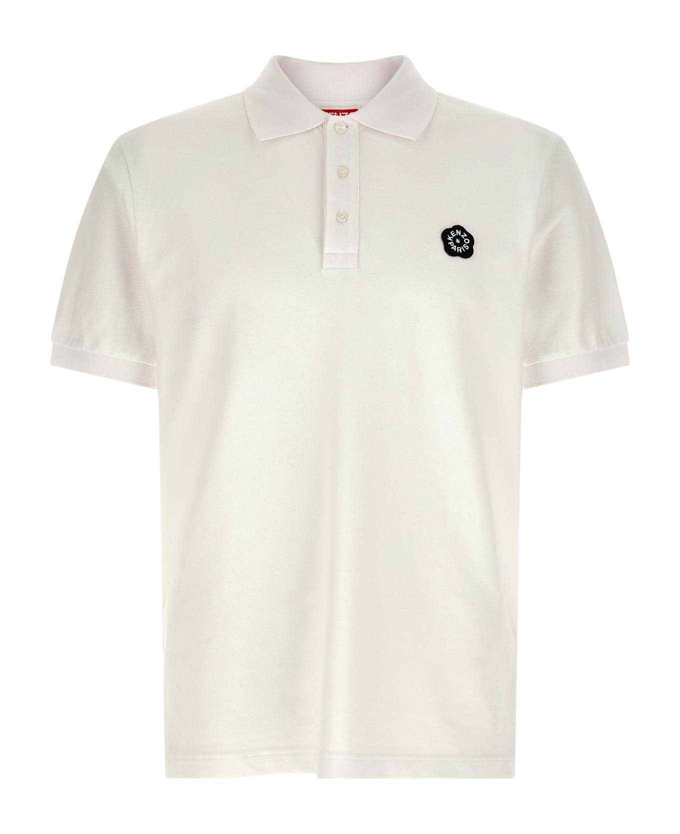 Piqué cotton polo shirt, front 'Boke Flower 2. 0' patch, collar and buttons, short cuffed sleeves.