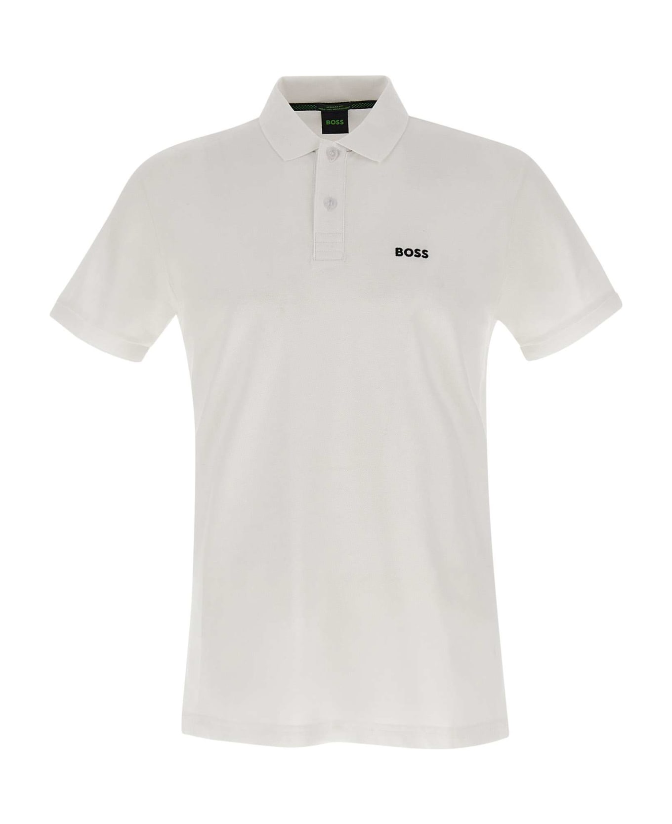 Boss 'Piro' men's cotton polo shirt, white color, short sleeves, classic collar, two button fastening, black embroidery logo on chest, ideal for a casual and comfortable look. Composition: 100% Cotton