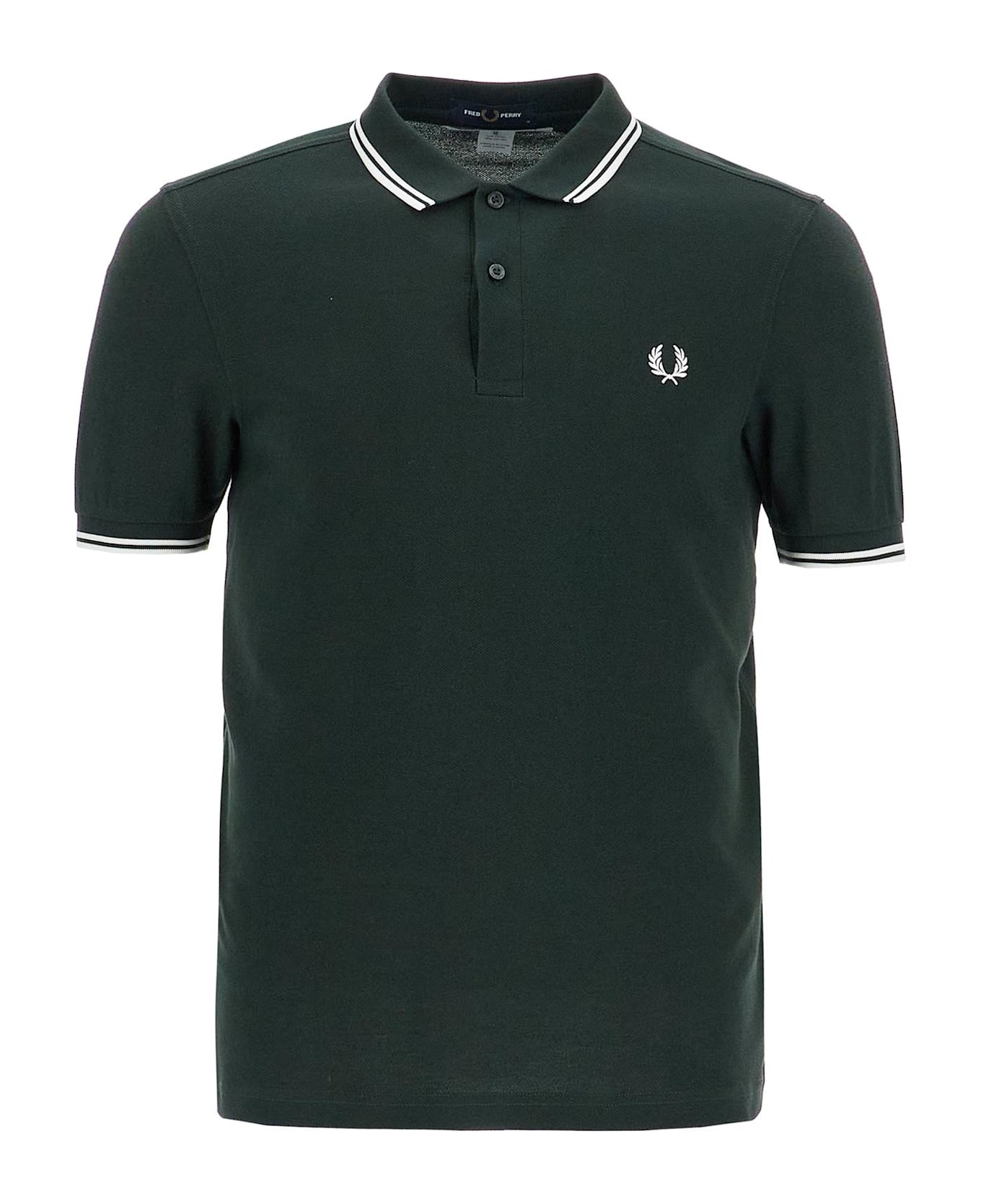 The Comme Des Garçons Shirt x Fred Perry polo is made of cotton piqué with contrasting embroidery on the chest and STRONG WILL print on the back. It features a classic collar, ribbed cuffs, and a regular fit. The model is 182 cm tall and wears size M.