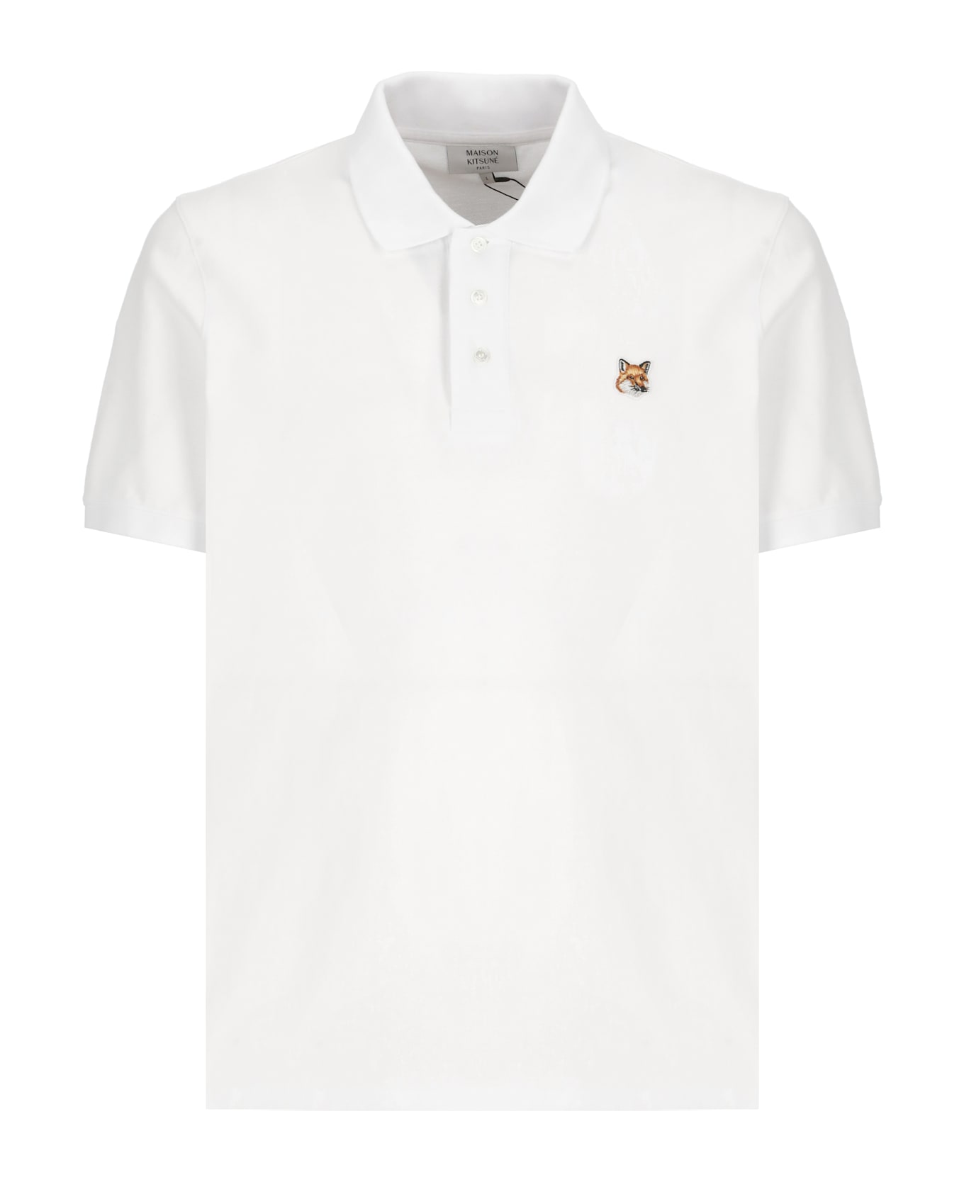 - White Maison Kitsune cotton three buttons polo shirt for man - Collar - Short sleeves - Front Fox Head patch