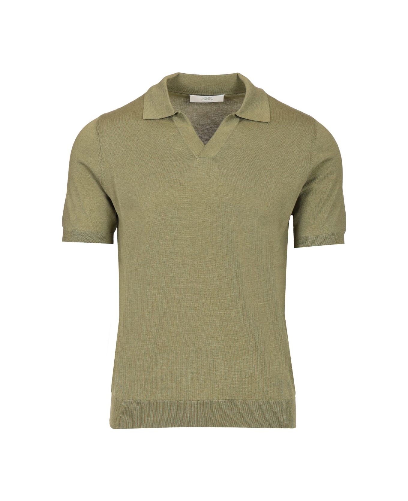 Silk and cotton knitted jersey polo shirt from Mauro Ottaviani with classic collar, short V-neck without buttons, stretch ribbed hems. Slim fit.