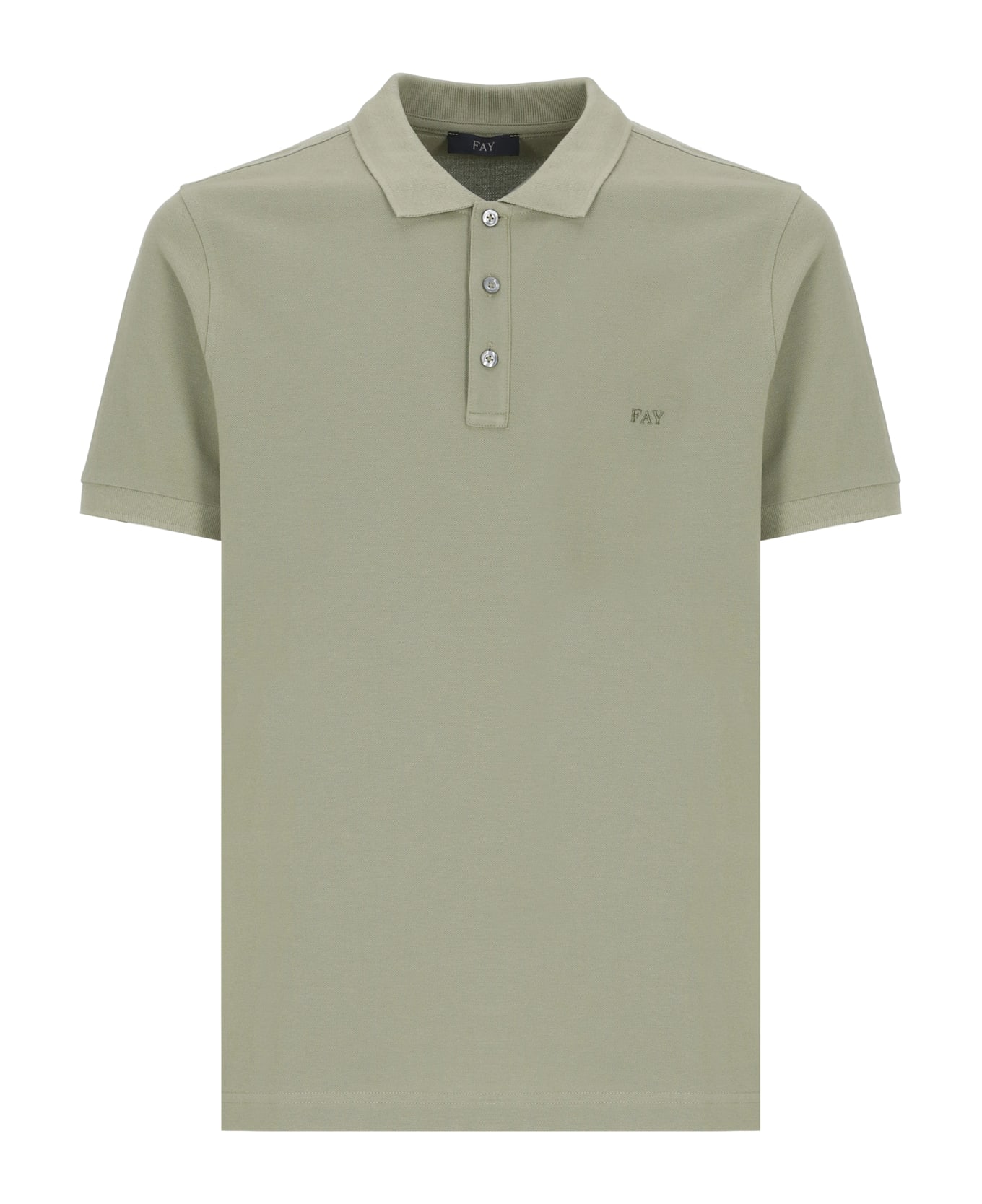 - Green Fay cotton three buttons polo for man - Collar with buttons - Short sleeves - Front tone on tone logo
