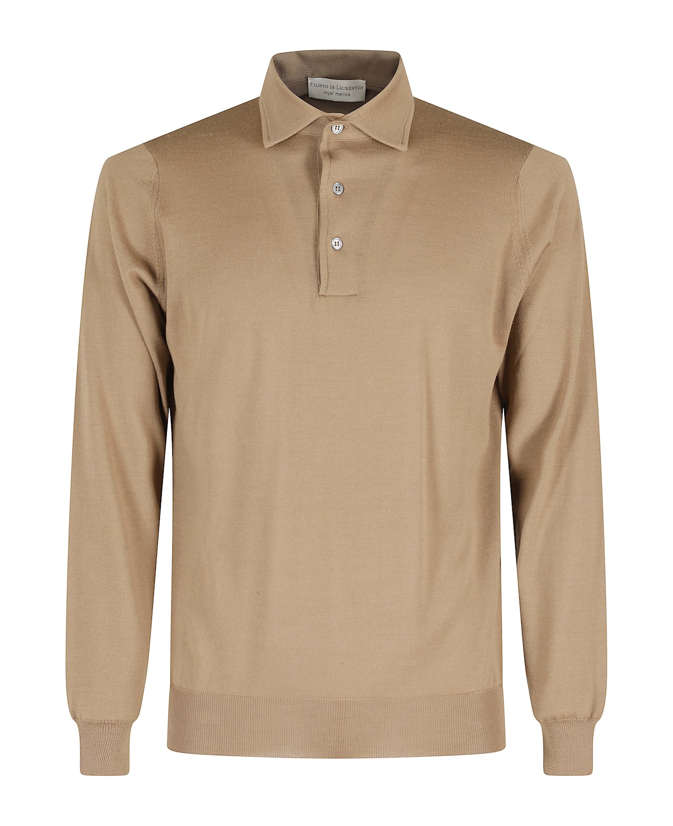 Polo shirt - Filippo De Laurentiis - Ecru color - Polo collar with buttons - Long sleeve - Ribbed trim