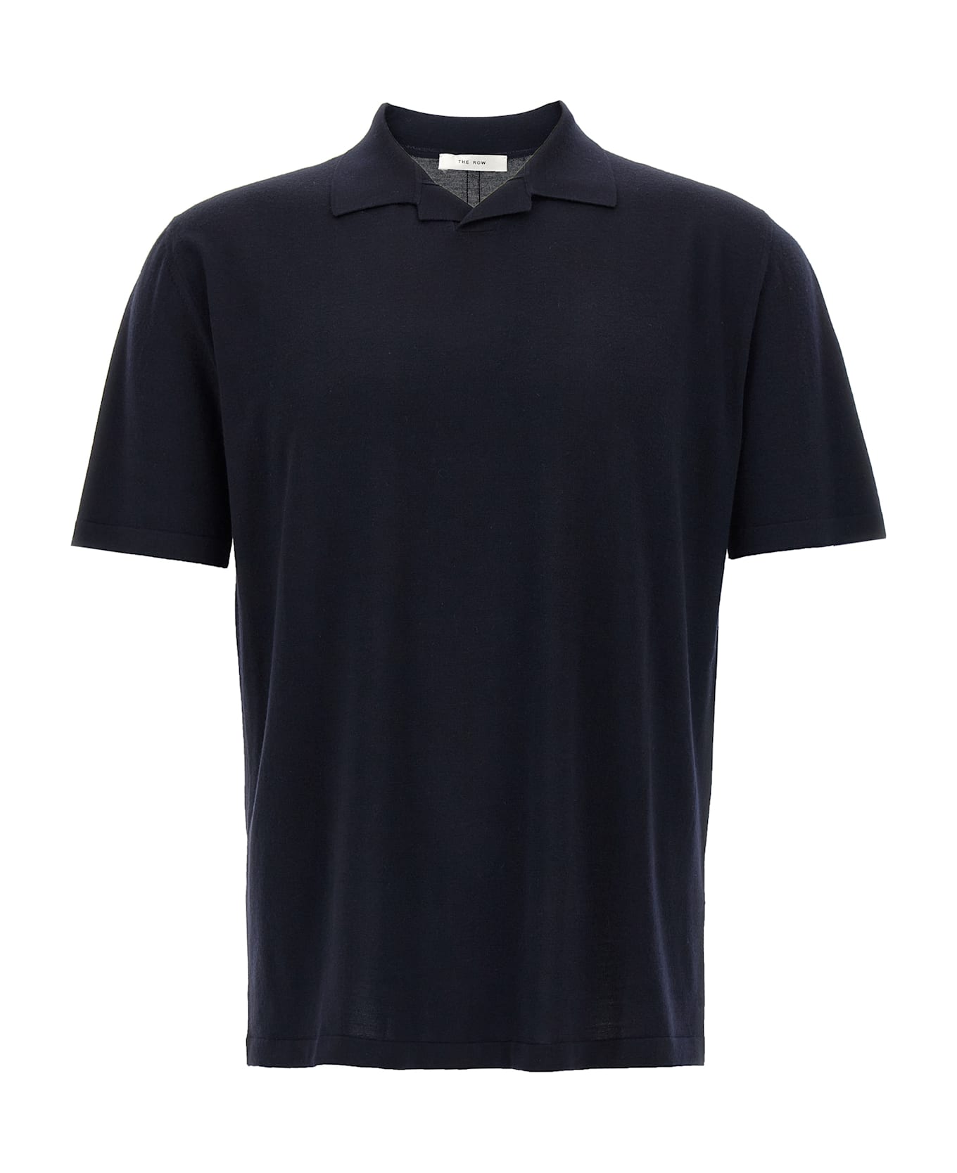 'Mauro' polo shirt in ultrafine wool with V-neck, collar, short sleeves, back central groove detail.