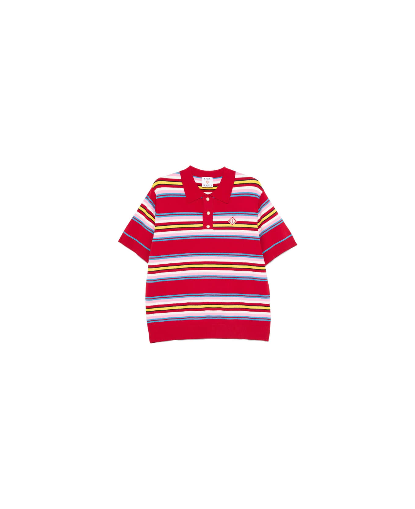- Red Casablanca viscose polo shirt for man - Contrasting color striped pattern - Collar - Short sleeves - Front buttons fastening Composition: 66% Viscose, 14% Polyester, 13% Cotton, 7% Polyamide