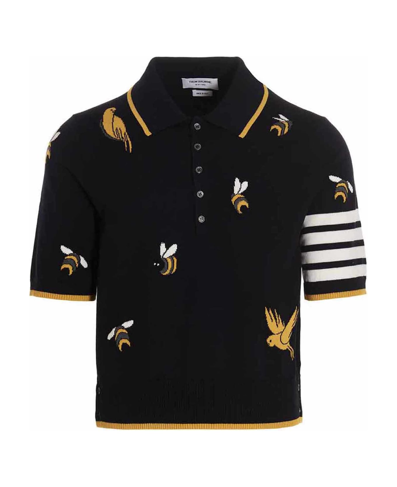Bird and Bees' polo shirt in a wool and cotton blend with jacquard pattern and short sleeves. Composition: 90% wool 10% cotton