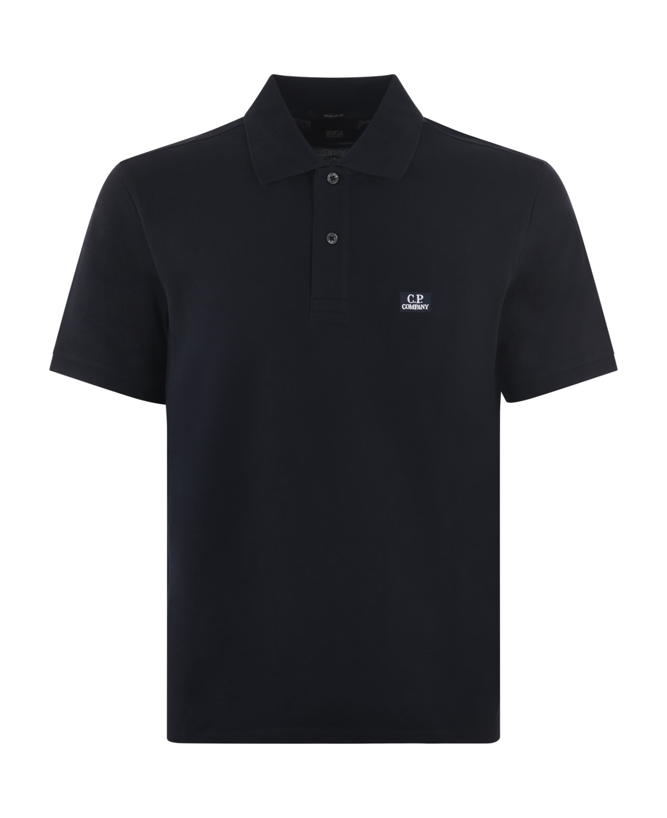 Polo C. P. Company in Dark blue cotton piqué. Collar. Short sleeves. Closure with two buttons. contrasting embroidered logo lettering on the chest. Side slits. Regular fit. 95% Cotton, 5% Elastane Made in China