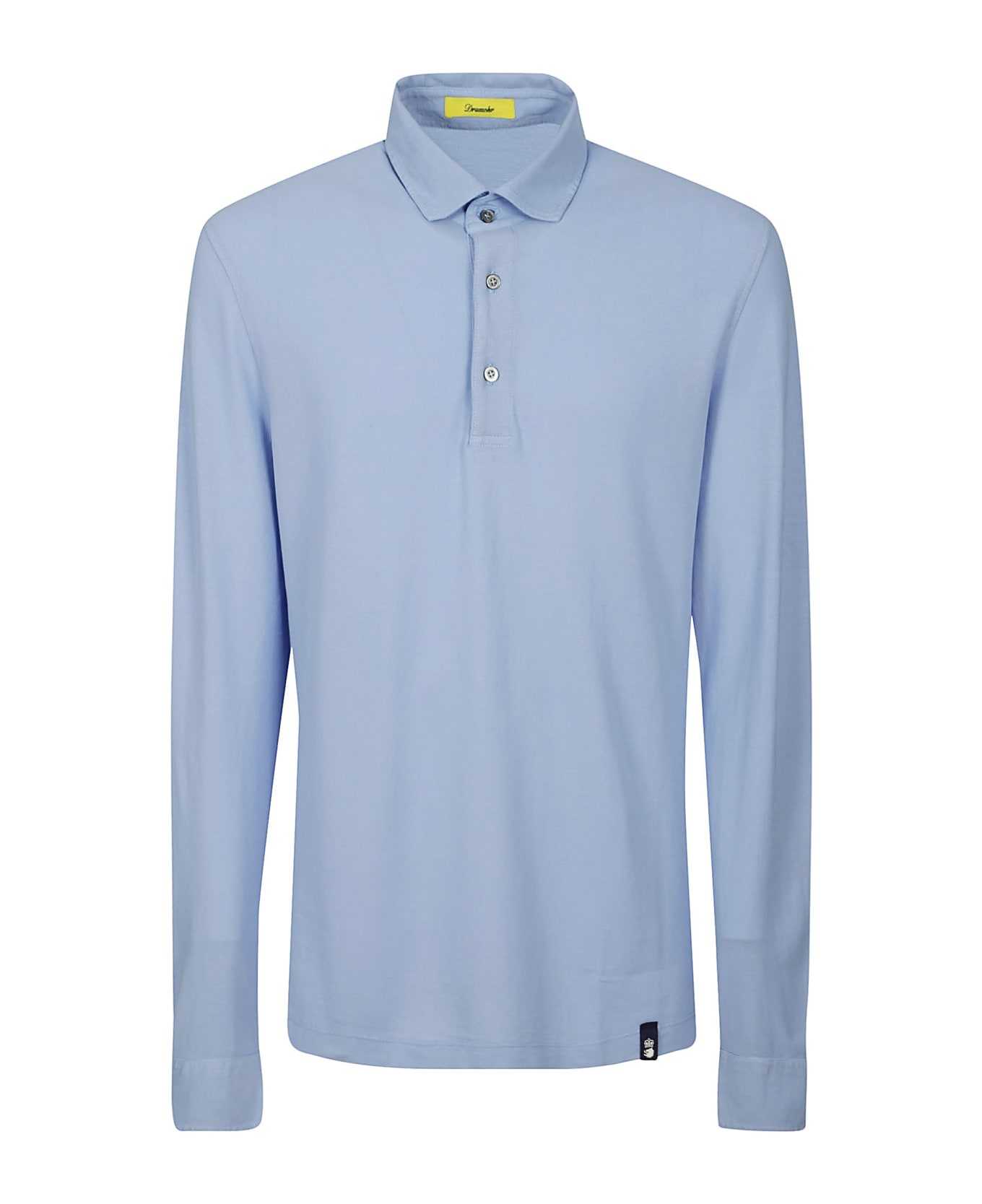 Drumohr Light blue cotton polo shirt, long sleeves, pointed collar with three-button closure, slim fit.