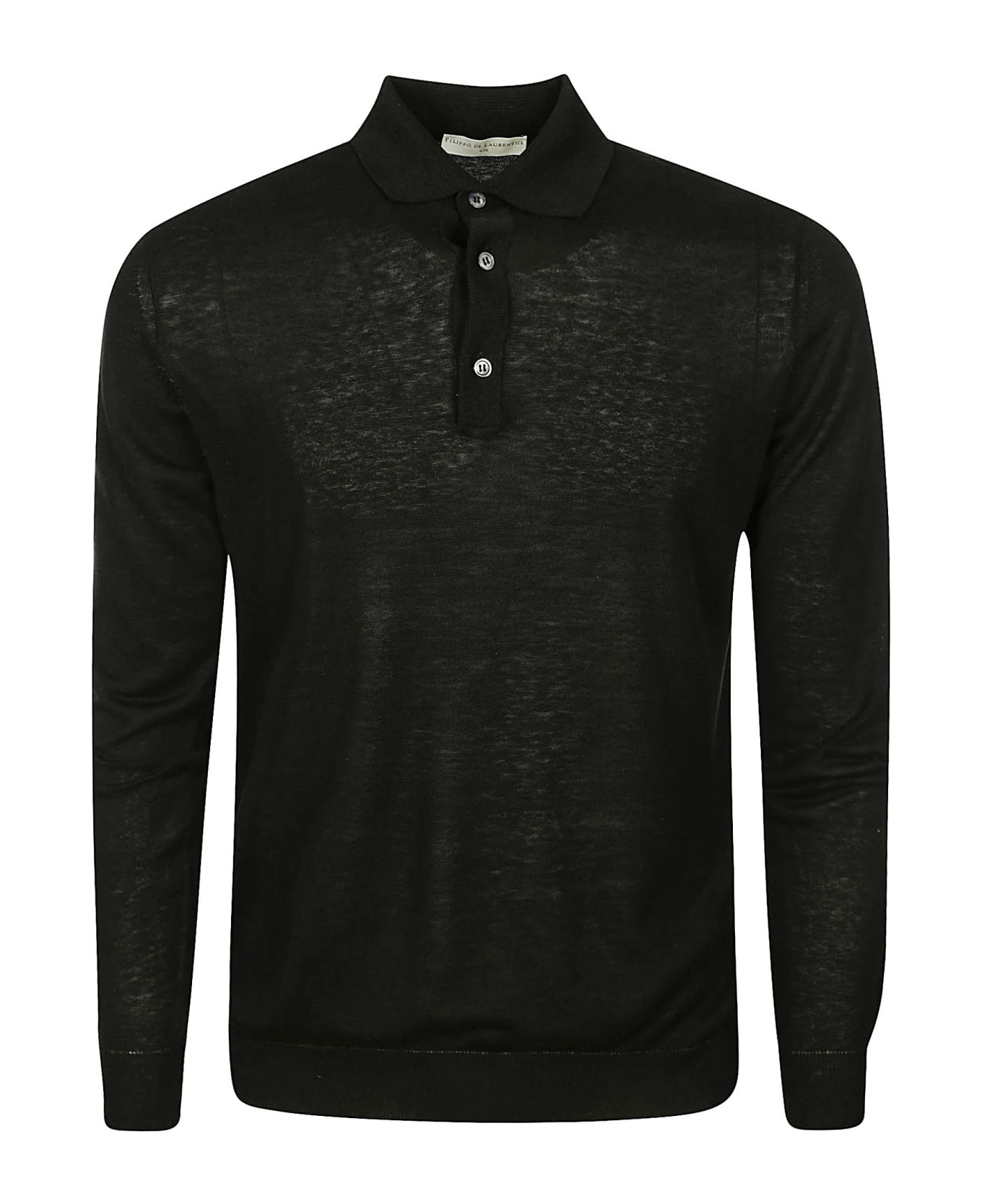 Filippo de Laurentis Black cotton polo shirt, long sleeves, button closure.