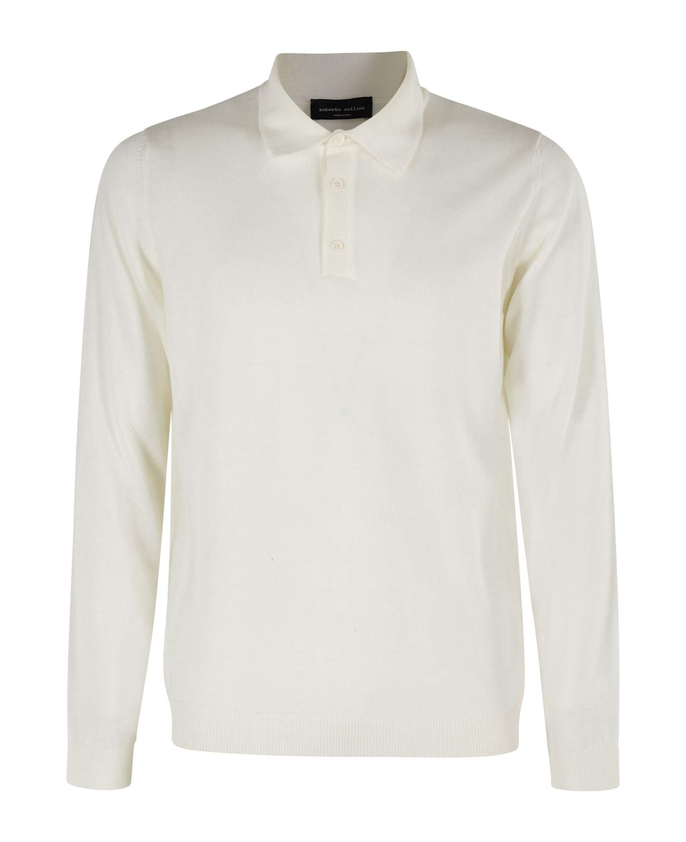 Polo shirt -Roberto Collina -Color ecru -Classic collar with buttons -Long sleeve