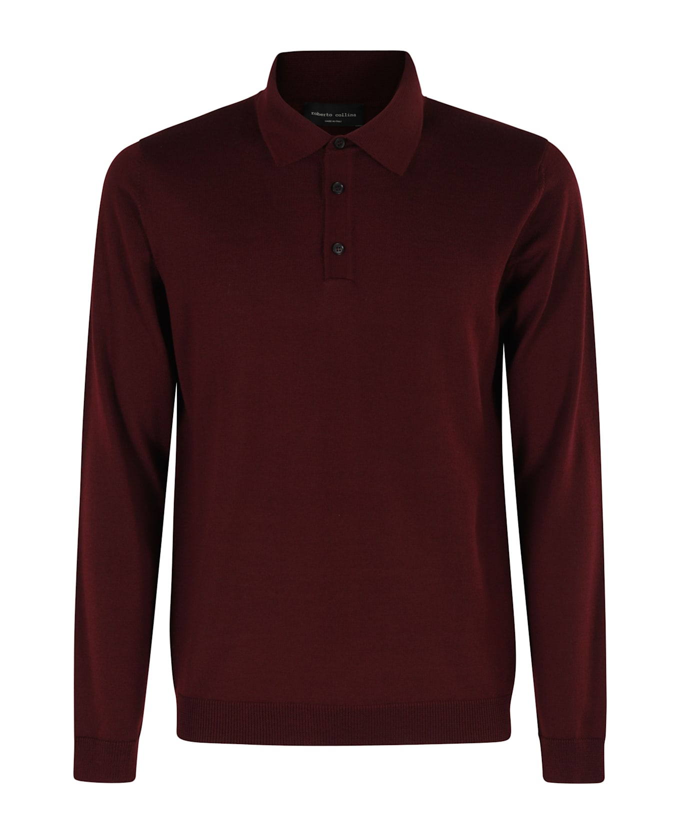 Polo shirt -Roberto Collina -Burgundy color -Classic collar with buttons -Long sleeve