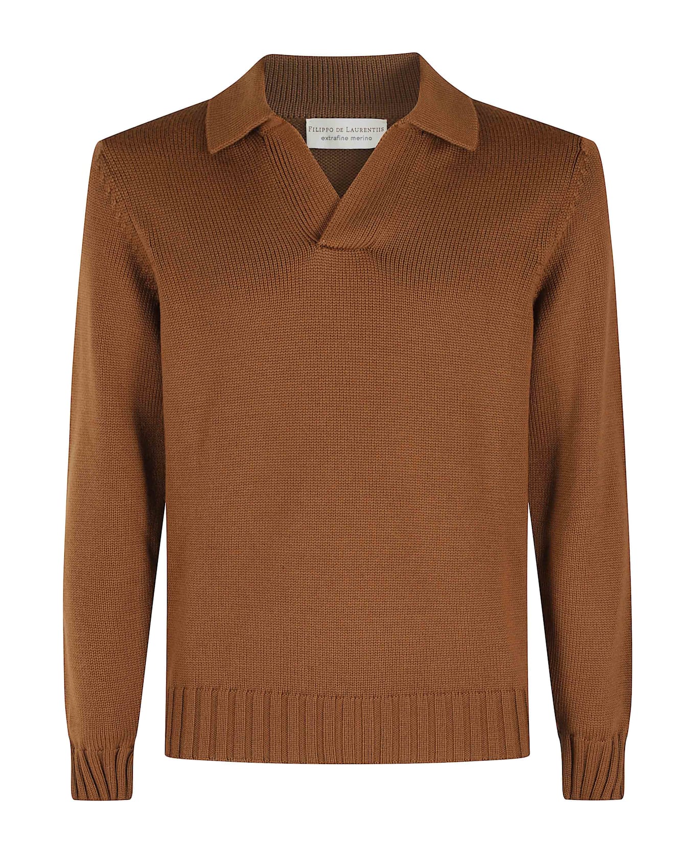 Skipper polo shirt - Filippo De Laurentiis - Toffee color - Merino wool fabric - Polo collar - Long sleeve - Regular fit