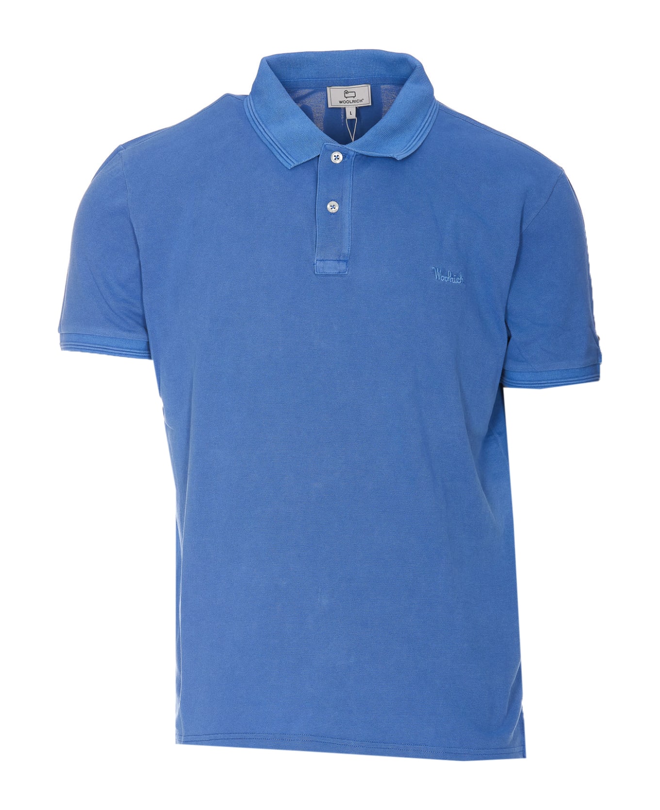 Woolrich blue polo t-shirt, regular collar, frontal buttons, embroidered logo on the front