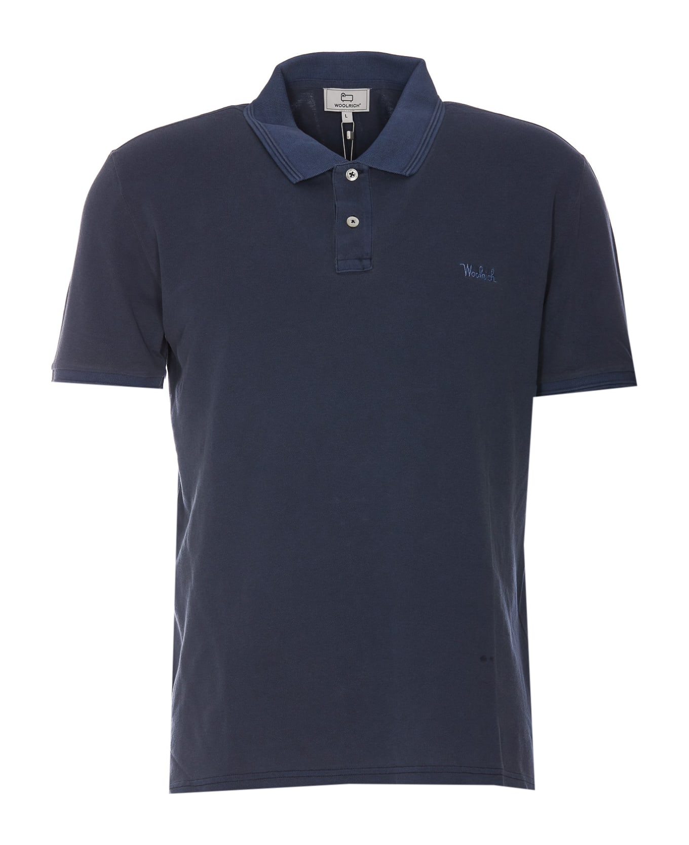 Woolrich blue polo t-shirt, regular collar, frontal buttons, embroidered logo on the front