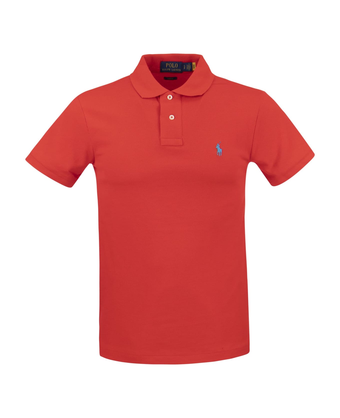 A staple of American style since 1972, the Polo has been imitated but never equalled. Over the decades, Ralph Lauren has reintroduced its unique style in a wide range of colours and patterns, without ever altering the quality and attention to detail of the iconic original. This contoured version is made from highly breathable cotton pique for a textured effect and added softness. - Ribbed polo collar - Two button closure - Short sleeves with ribbed cuffs - Longer back hem - Exclusive embroidered pony on the left chest side DESIGNER ID: 710795080 011