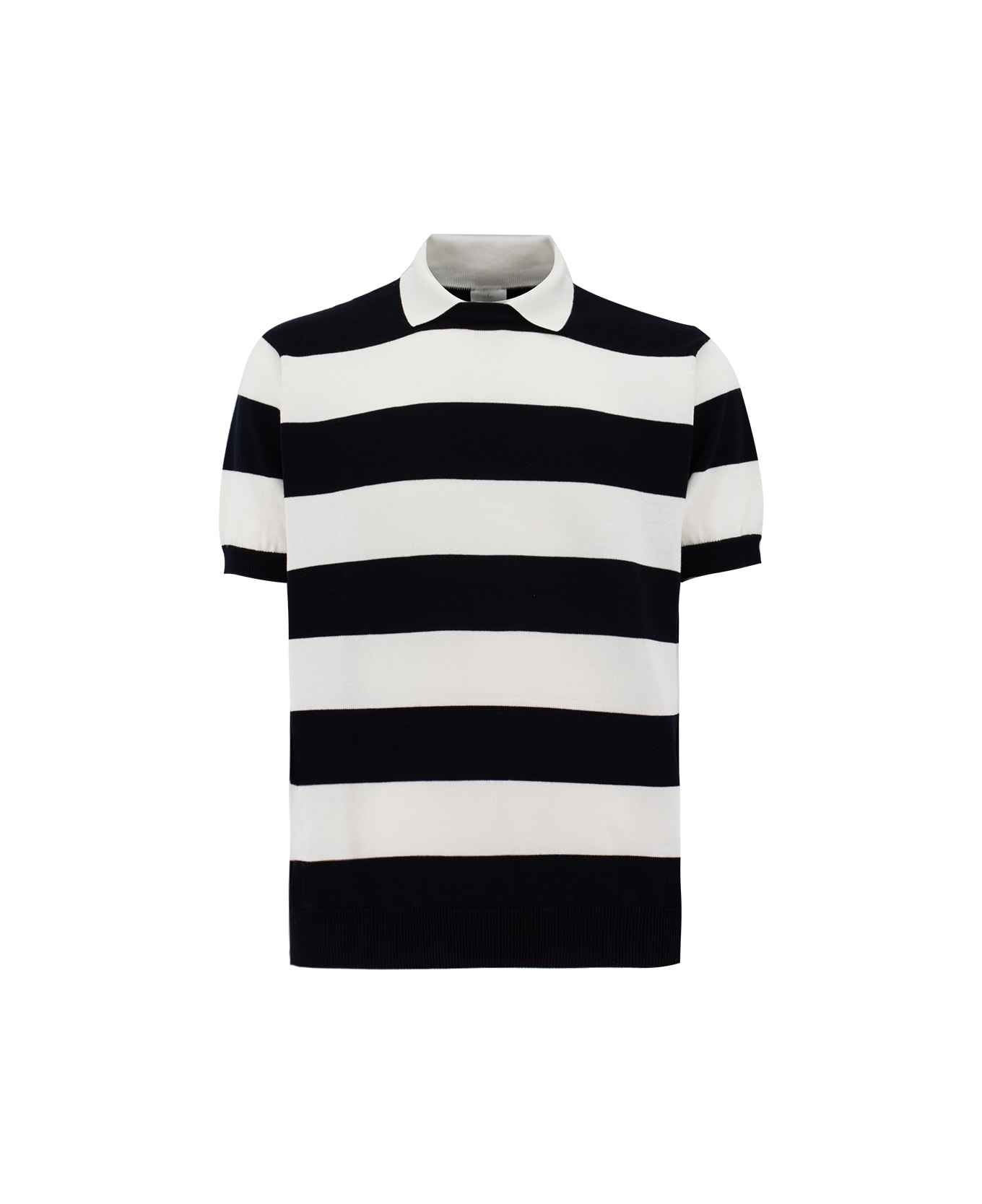 Crew neck sweater made of soft cotton, characterised by horizontal stripes, ribbed knit edges, short sleeves, regular fit. Composition: 100% CO