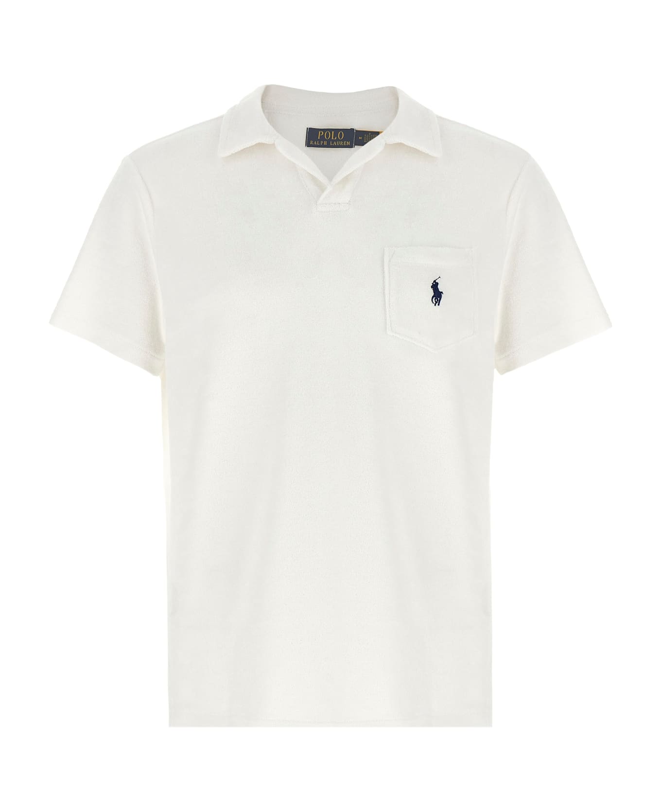 Polo shirt in light cotton blend terry, collar, V-neck, logo embroidery on breast pocket, short sleeves.