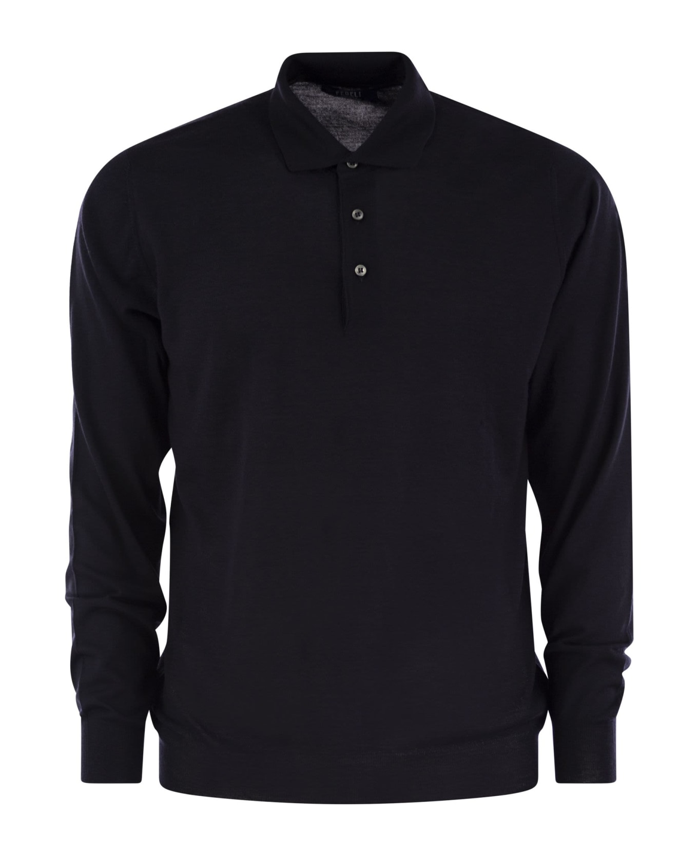 Three-button fastening polo shirt in fine virgin wool. Lightweight, soft, yet durable and versatile. Perfect to wear alone or as an under-jacket. - Polo shirt - Regular fit - Long sleeves DESIGNER ID: 7UI07015 6 Composition: 100% Virgin wool