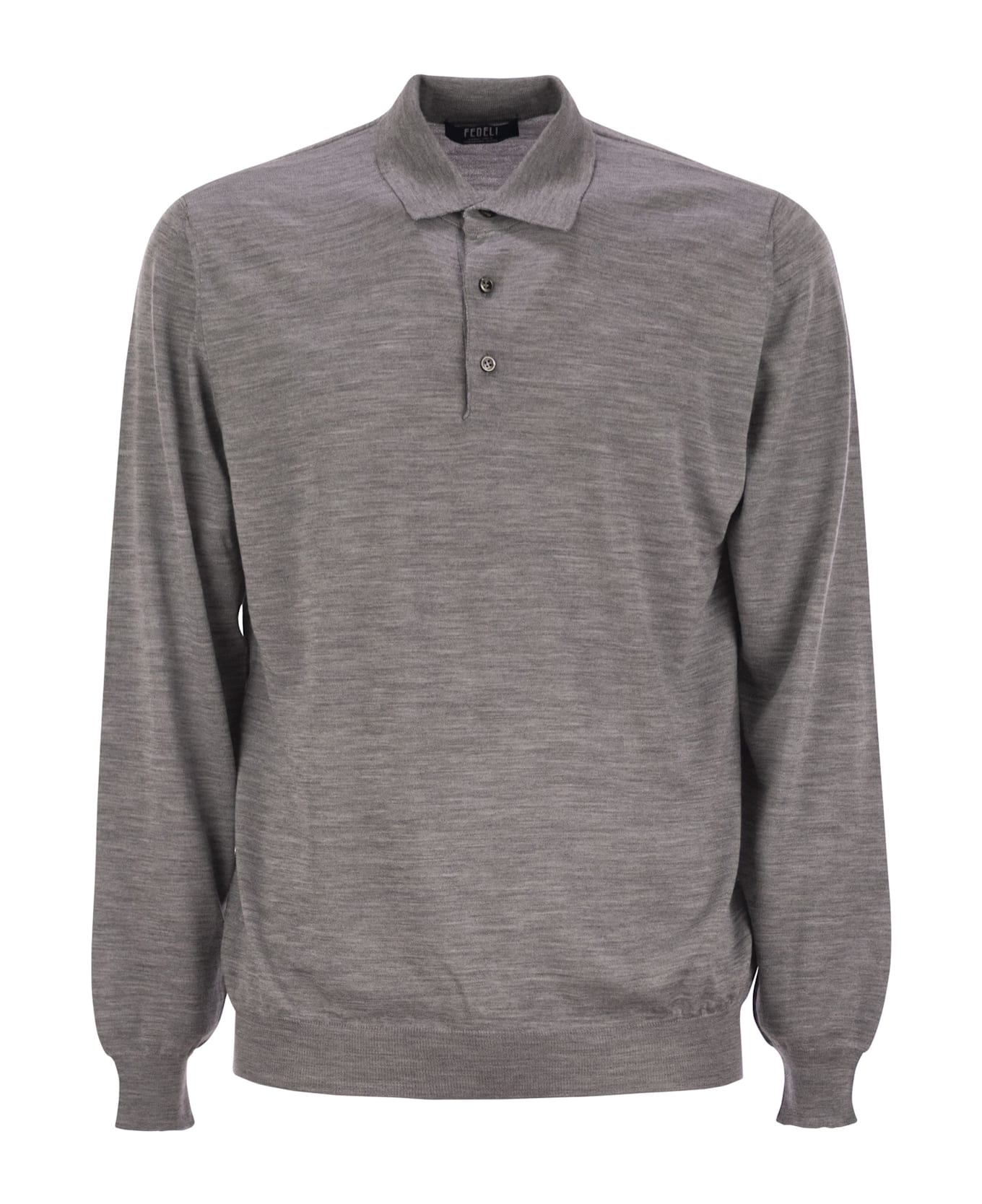 Three-button fastening polo shirt in fine virgin wool. Lightweight, soft, yet durable and versatile. Perfect to wear alone or as an under-jacket. - Polo shirt - Regular fit - Long sleeves DESIGNER ID: 7UI07015 1 Composition: 100% Virgin wool