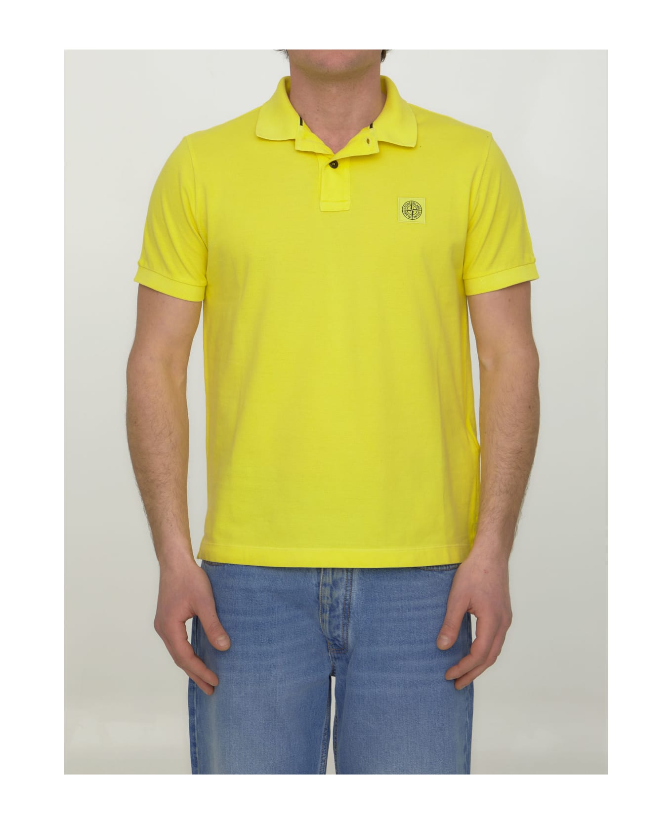 Short-sleeved polo shirt in yellow cotton with Compass patch on chest. Classic collar, front buttoned placket and ribbed finishes on neck and cuffs. The model is 188cm tall and wears size M.