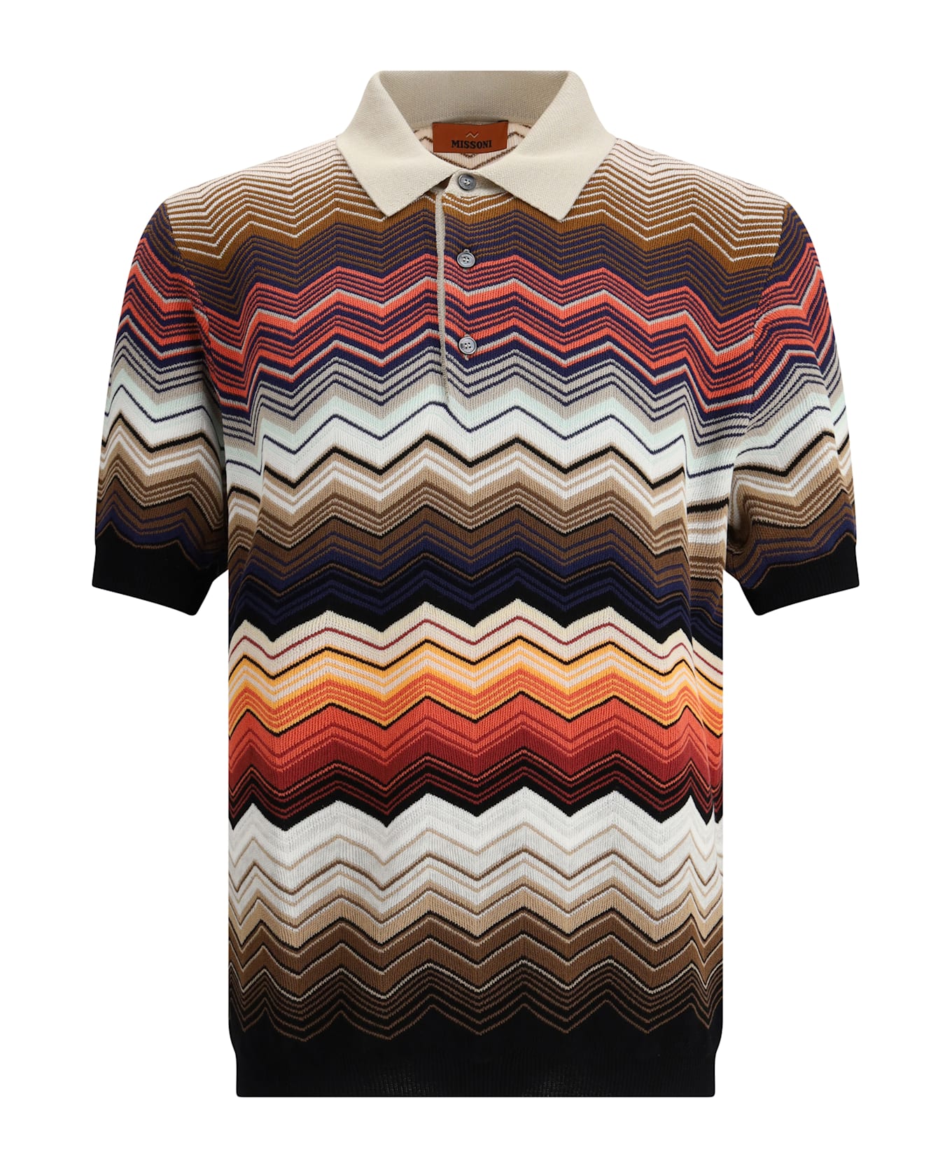 Missoni's knit polo shirt is an iconic garment that combines elegance and vibrancy. made with the characteristic all-over zigzag pattern, it expresses all the brand's identity. the ribbed collar and hem, along with the classic three-button front closure, complete the design with timeless style and sartorial attention to detail.