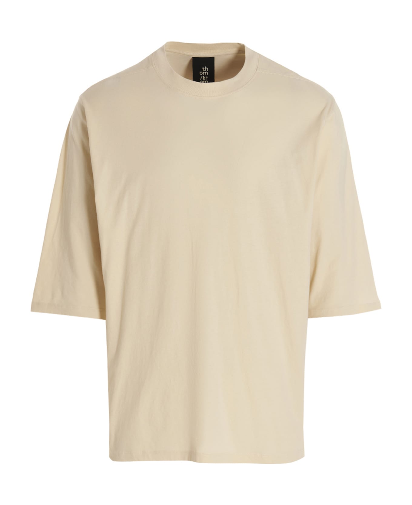 Cotton crew neck t-shirt with 3/4 sleeves, dropped shoulders.