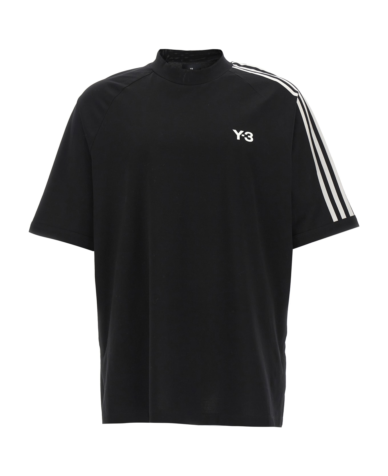 '3S' cotton T-shirt with front logo print, contrasting bands on sleeves, crew neck, short sleeves.