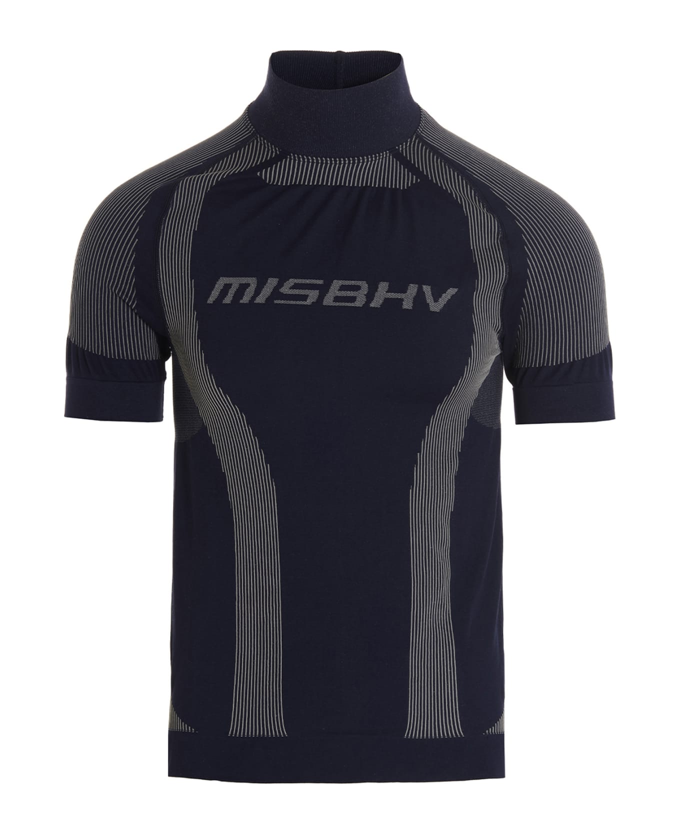 Active sport t-shirt in recycled polyamide with short sleeves, high neck and front logo intarsia. : this product is made with recycled material.
