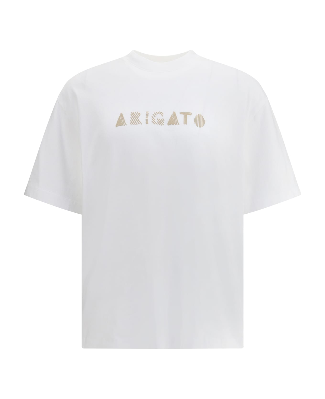 The annotate cotton t-shirt by axel arigato combines minimalism and visual identity in an essential garment with a modern design. made of soft, high-quality cotton, it features a ribbed crew neck that ensures comfort and a perfect fit. the front is embellished with the brand's iconic contrasting monogram, a detail that gives a distinctive and contemporary touch. ideal for completing casual outfits with a clean and sophisticated style.