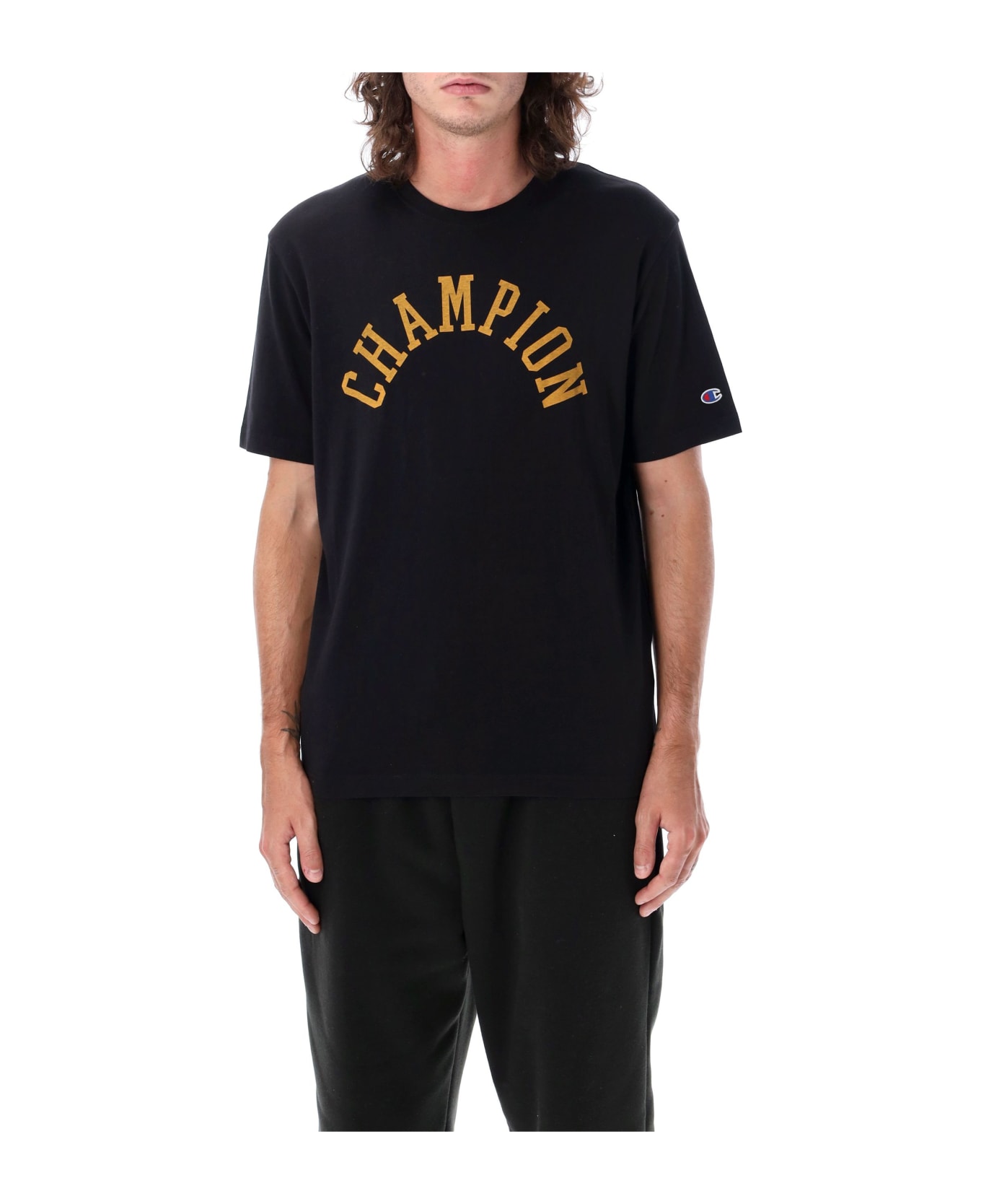 Archive Tee By Champions. Featuring: Crewneck Short Sleeves Printed Logo At Chest Logo Patch At Left Sleeve Straight Hem Regular Fit Model Is 1,90 M Tall And He Is Wearing Size L