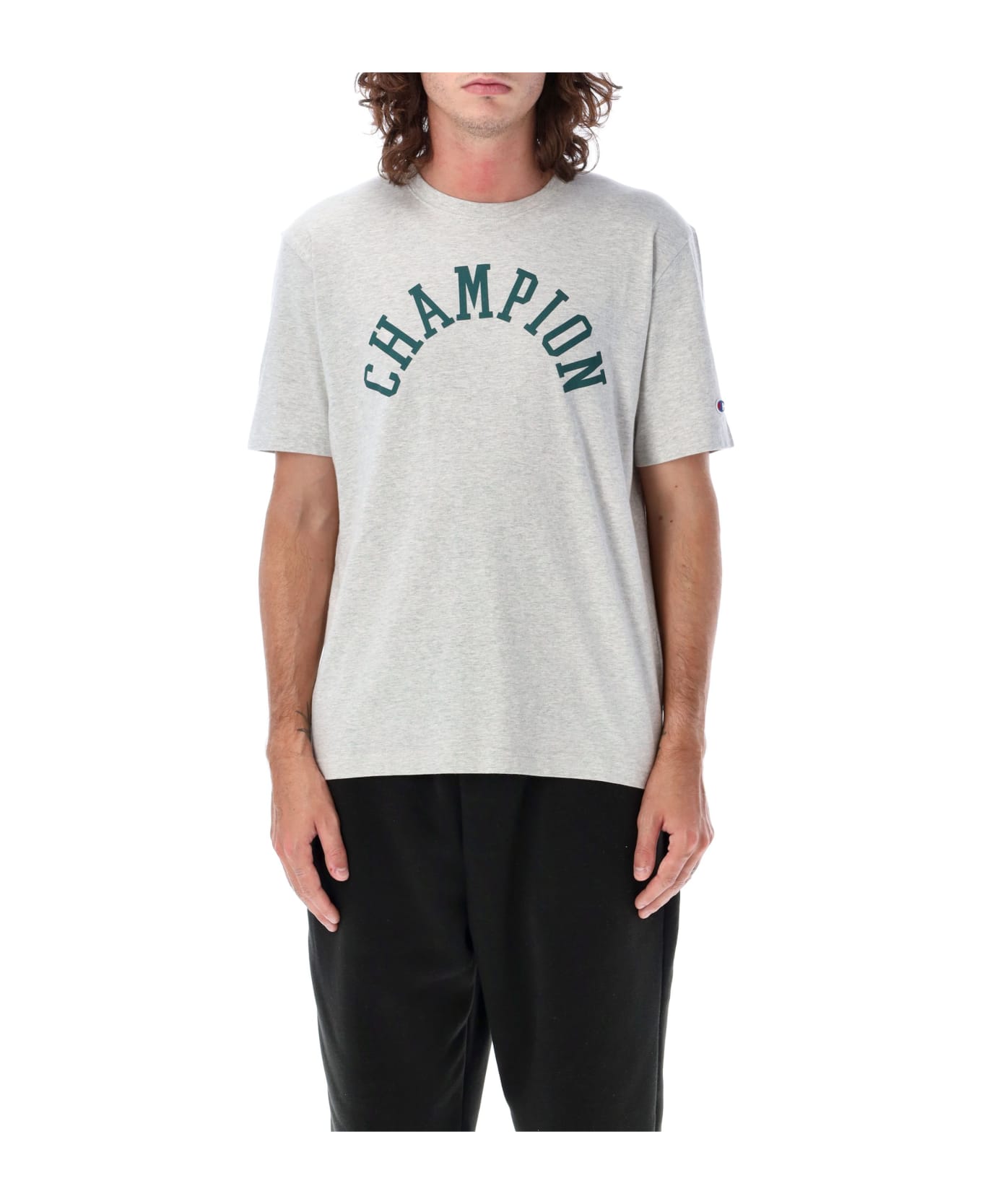 Archive Tee By Champions. Featuring: Crewneck Short Sleeves Printed Logo At Chest Logo Patch At Left Sleeve Straight Hem Regular Fit Model Is 1,90 M Tall And He Is Wearing Size L