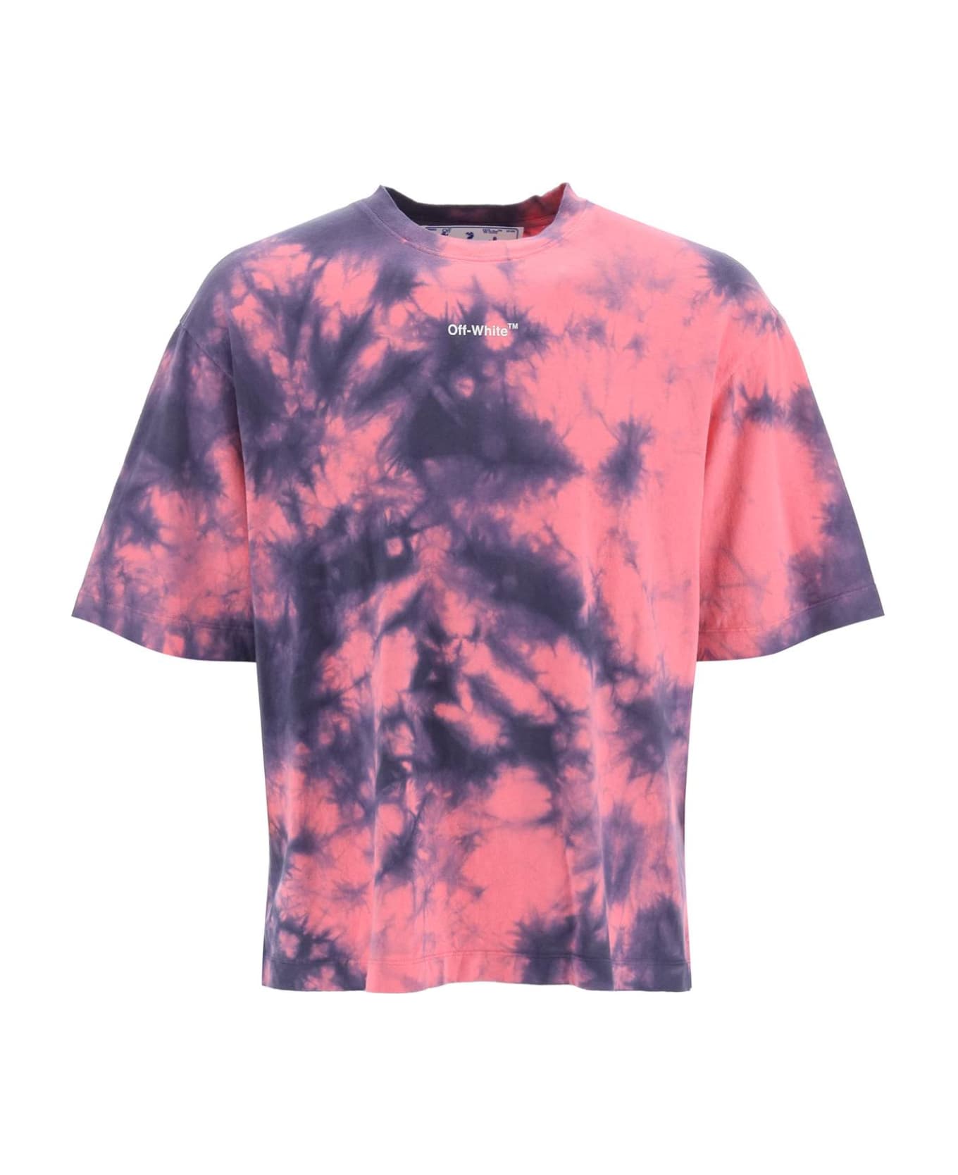 Off-White crew neck t-shirt in tie-dye cotton jersey, printed with Arrow graphic on the back and logo detail on the chest. Oversized fit. The model is 187 cm tall and wears a size L.