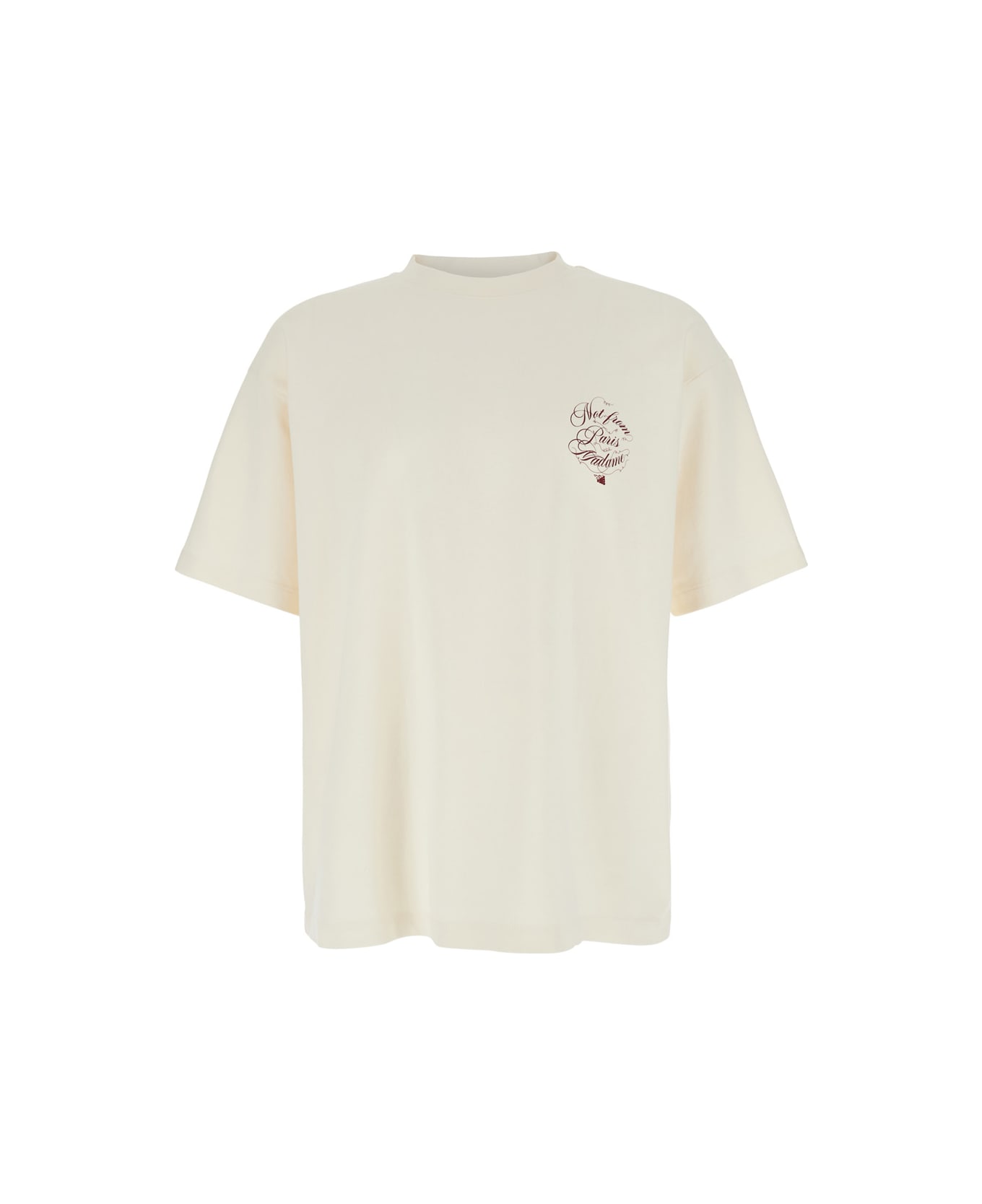 T-shirt Beige Crew neck Short sleeves Dropped shoulders Printed logo on the front Maxi logo printed on the back Straight hem Cotton Relaxed fit