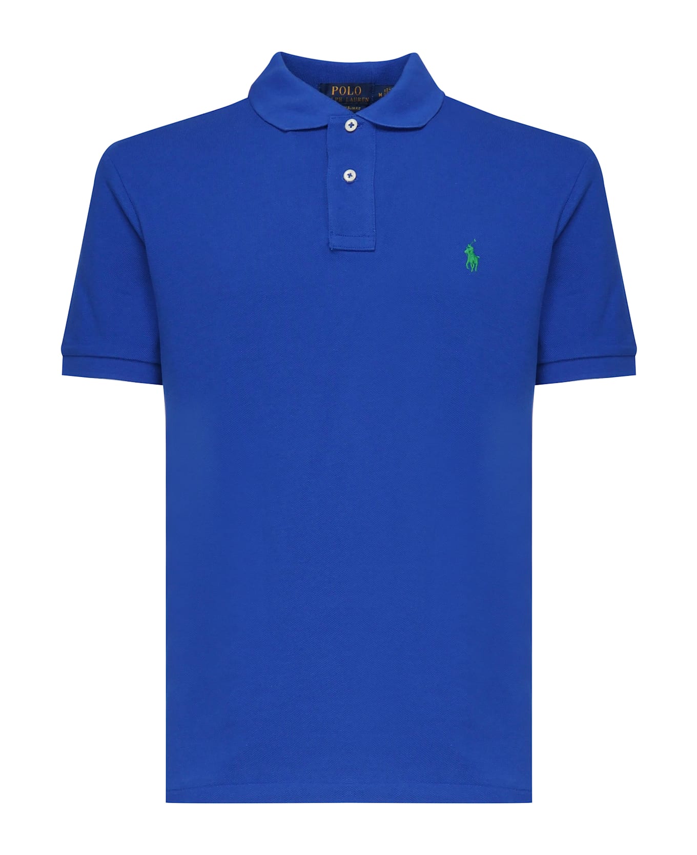-Ribbed polo collar -Covered button placket -Contrasting embroidered logo on the chest -Short sleeve -Logo on the outside of the shaft -Size shown in the photo is M -Color: Blue