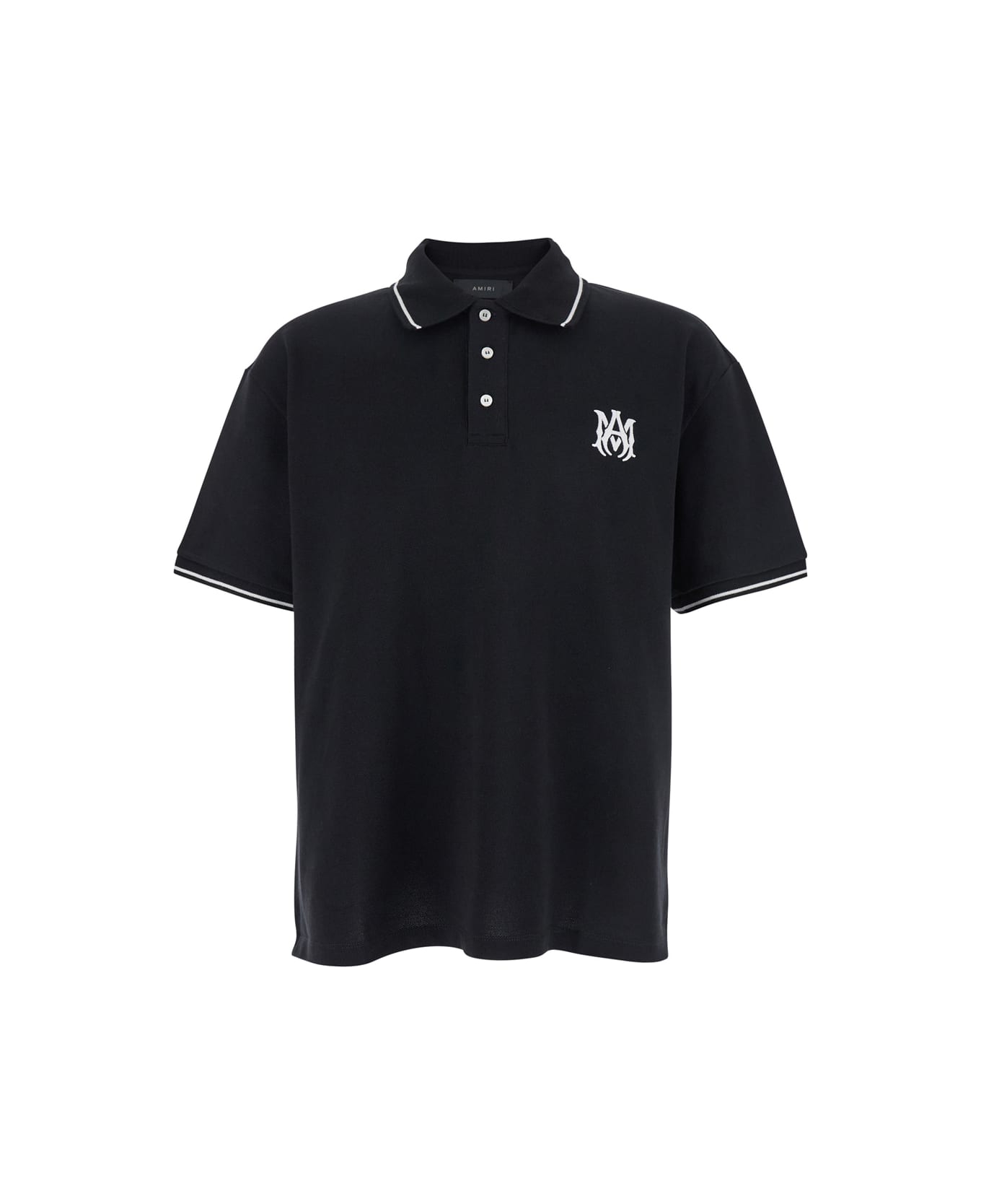 Black Polo Shirt With Classic Collar And Logo Embroidery On The Front In Cotton Man