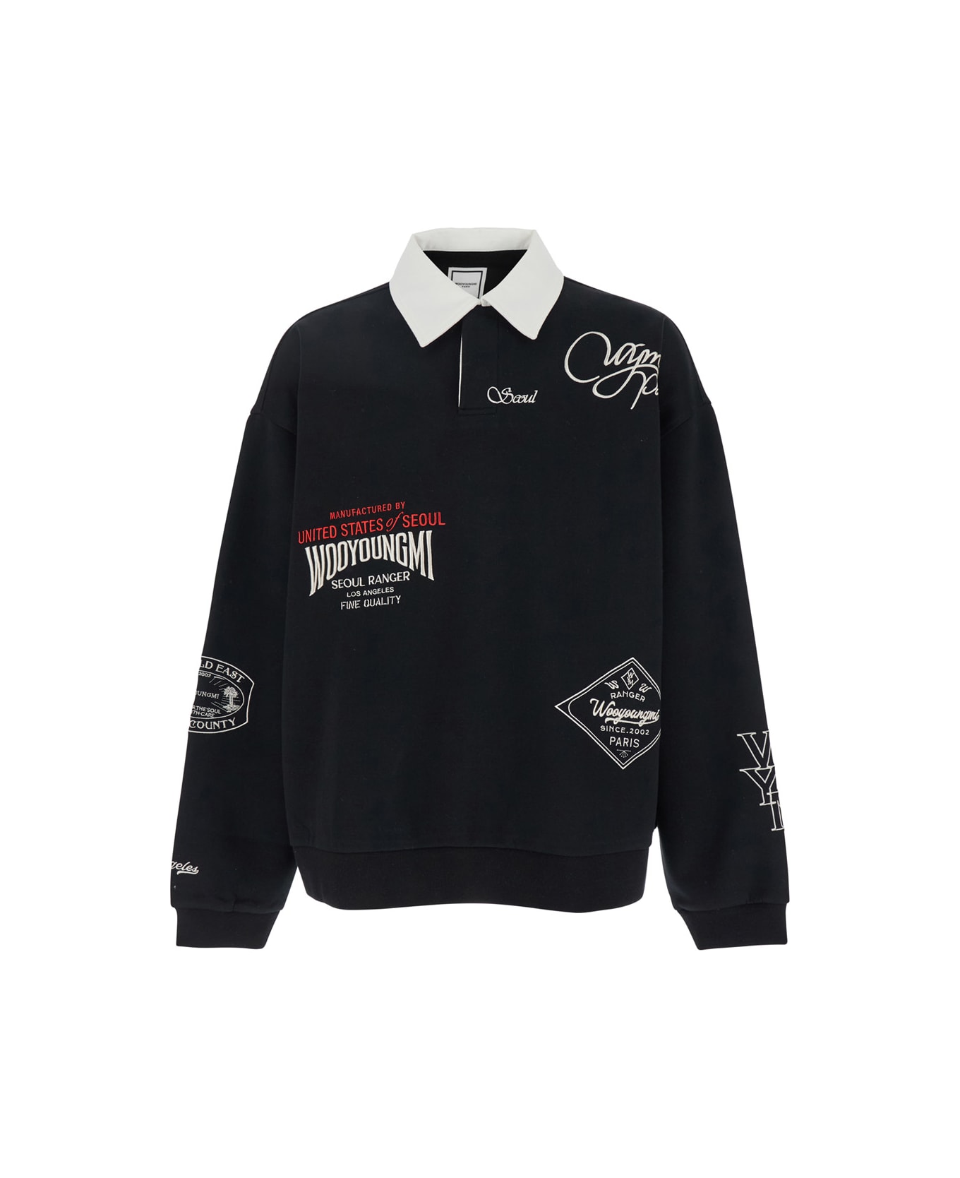Polo shirt Black Classic collar Long sleeves Front concealed closure Prints on the front Logo detail on the rear Straight hem Cotton blend Regular fit