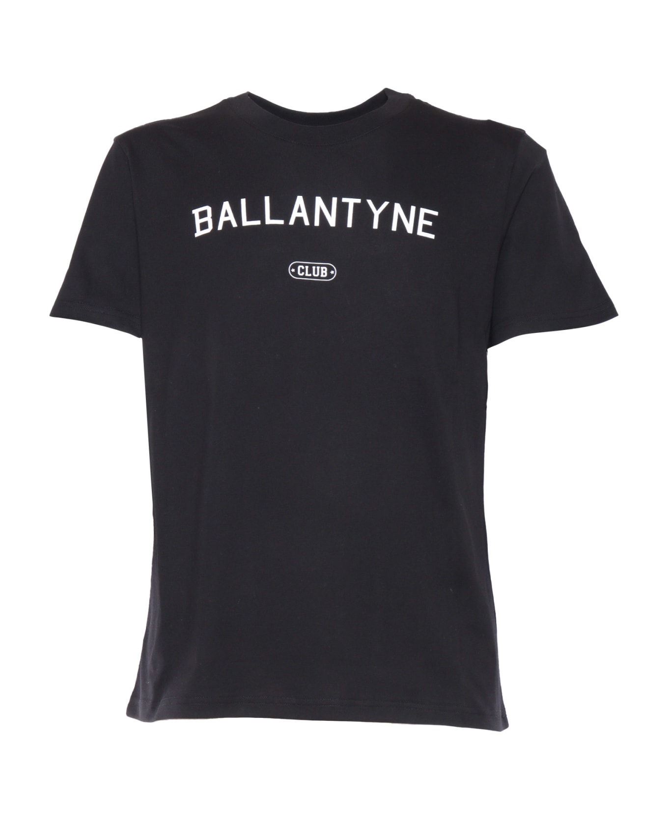 Black T-shirt with contrasting white Ballantyne logo on the front.