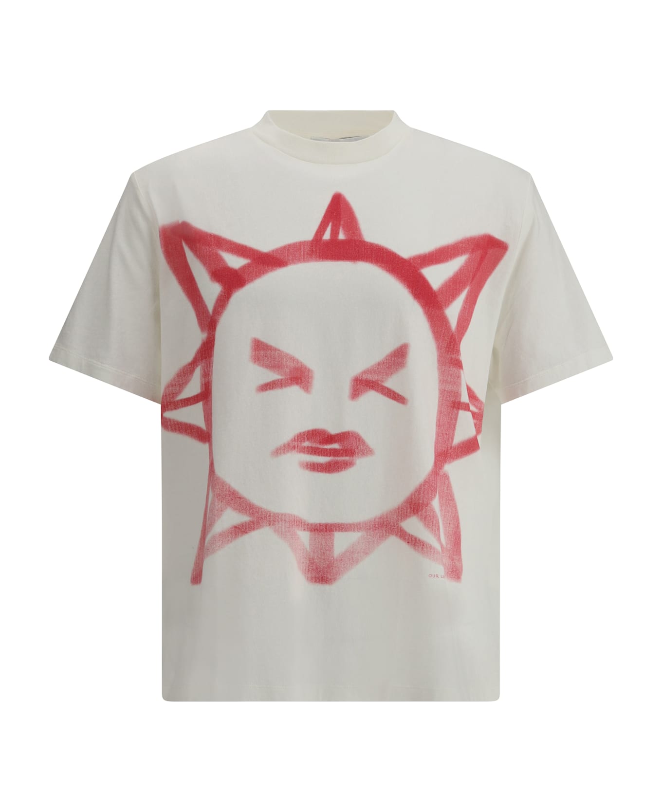 The our legacy box cotton t-shirt is a piece with a vintage design and distinctive style. it features a ribbed crew neck, which defines the cut, while the monochrome design makes it easy to match. the large contrasting print on the front adds a bold and modern touch, making this t-shirt a unique piece for a casual and contemporary look.