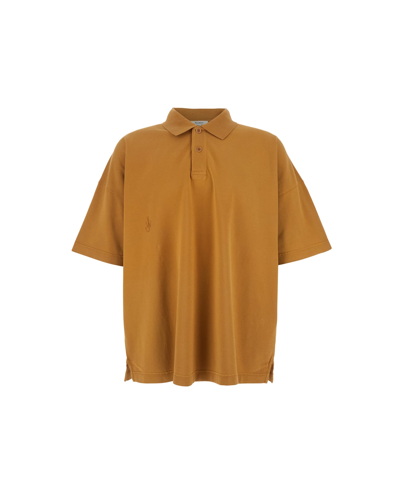 Brown Oversize Polo Shirt With Classic Collar And Logo Detail On The Front In Cotton Man