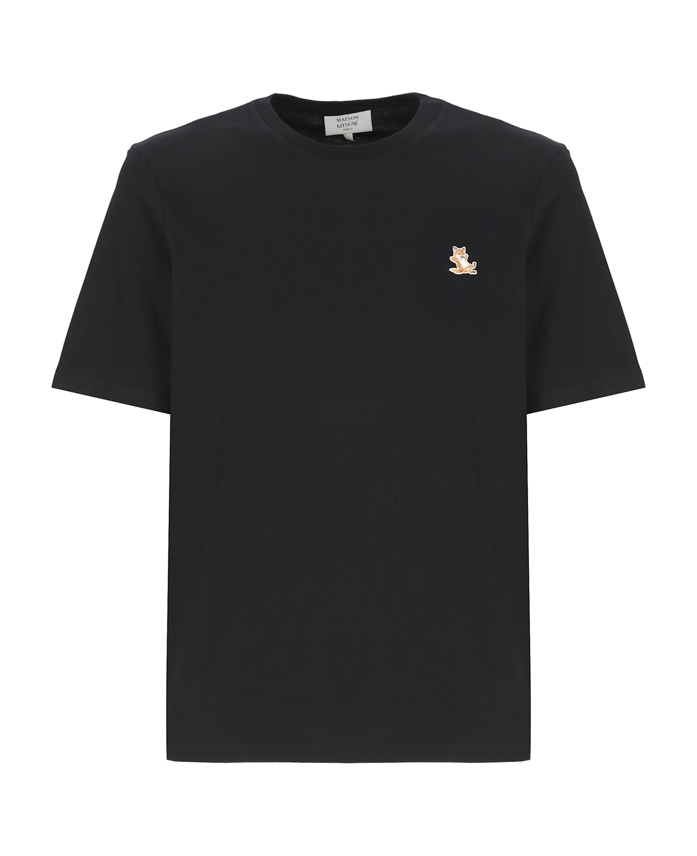 - Black Maison Kitsune cotton t-shirt for man - Crew neck - Short sleeves - Front contrasting colour Chillax Fox embroidery
