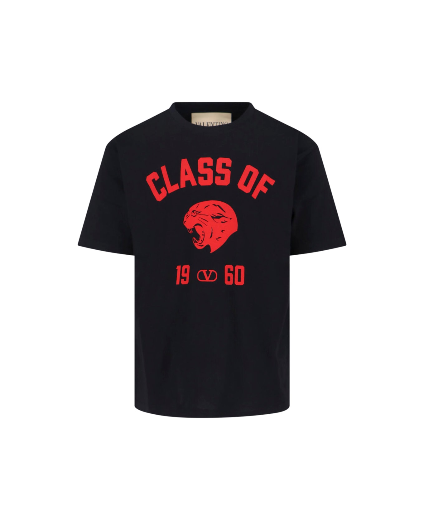 Valentino class of 1960 black cotton crew neck t-shirt with short sleeves, contrasting print on the front, straight hem. Composition: 100% Cotton