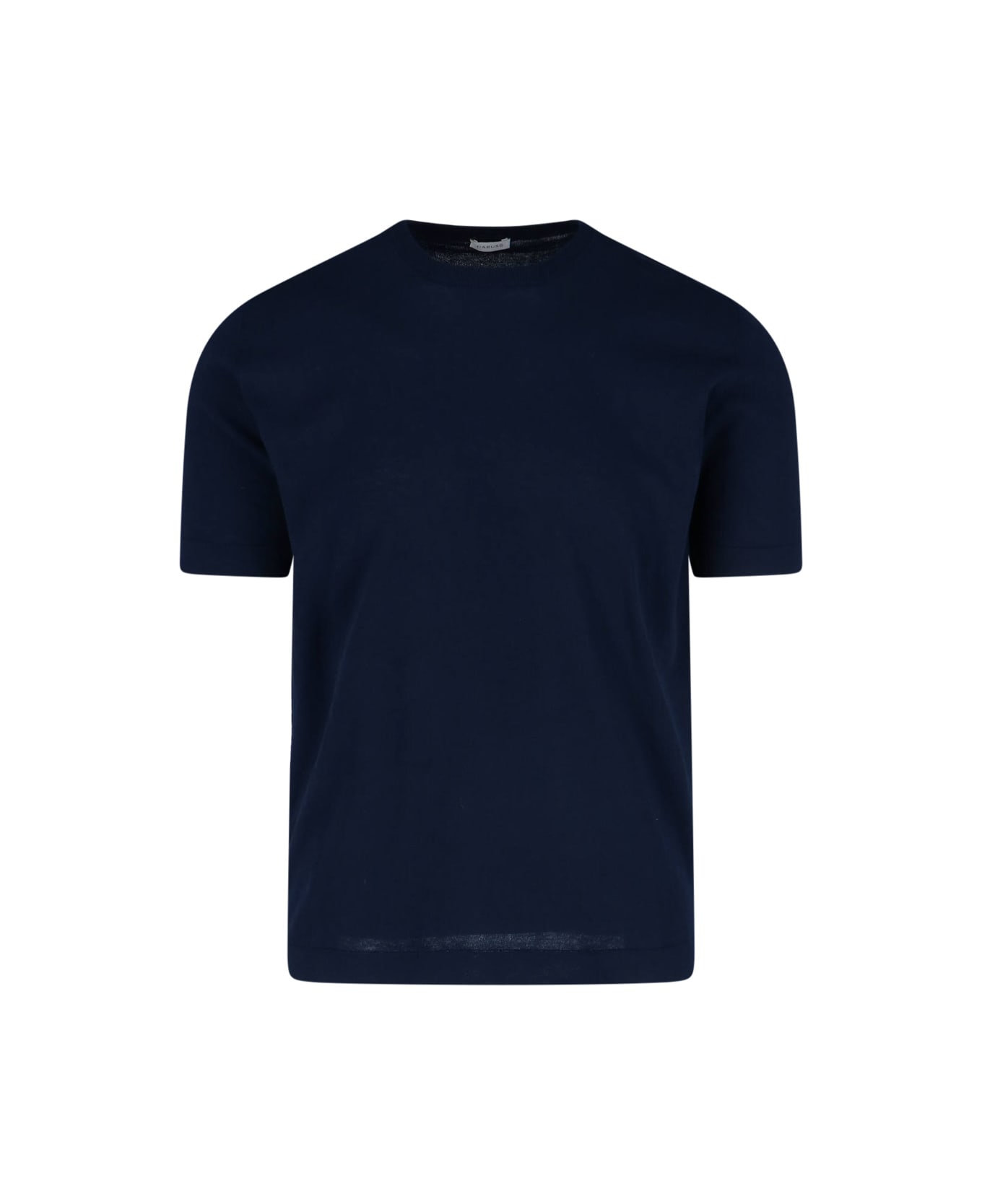 Caruso classic T-shirt in navy blue cotton with crew neck, short sleeves, straight hem.