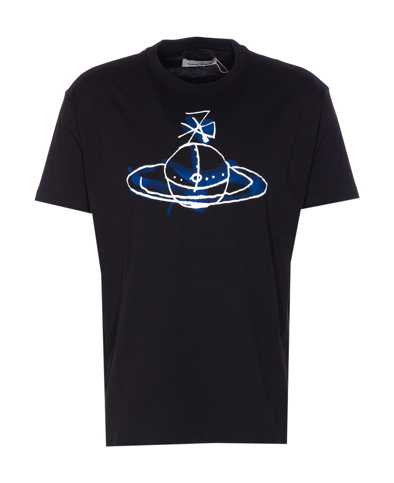 Vivienne Westwood black Drawn Orb classic t-shirt, crewneck, frontal logo, drawn effect