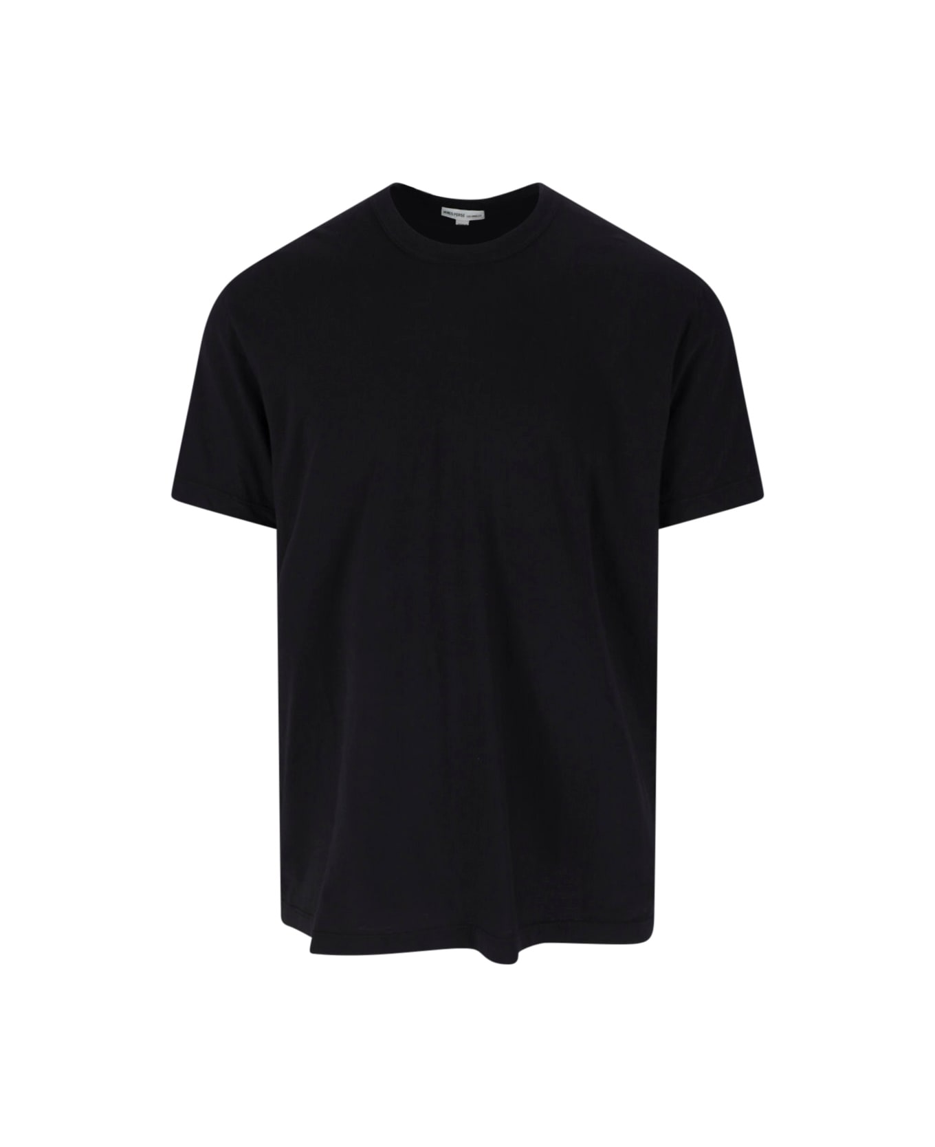 Classic James Perse black cotton crew neck t-shirt with short sleeves, side logo label, straight hem.